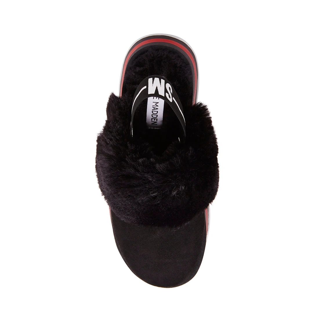 Equal parts comfort and style, ALIANA crosses a cozy faux fur-lined slipper upper with a fun flatform sole. A stretchy elastic back strap holds the shoe securely in place.