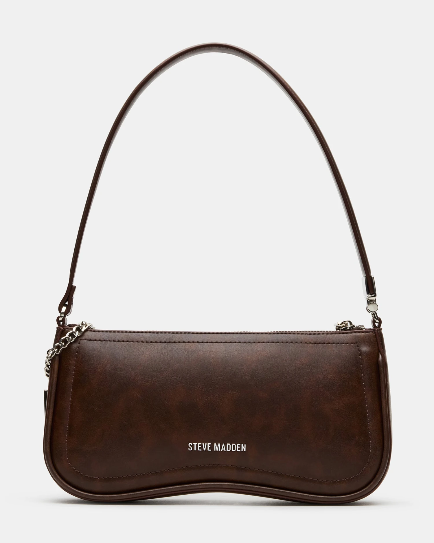 The ANGEL BAG BROWN DISTRESSED features a sculpted top-zipper design for secure and stylish access. Inside, an interior pouch on the back wall provides organized storage for essentials. A distinctive logo chain bag charm adds a refined, expert touch that complements the sleek silhouette, making this shoulder bag both functional and sophisticated for everyday wear.