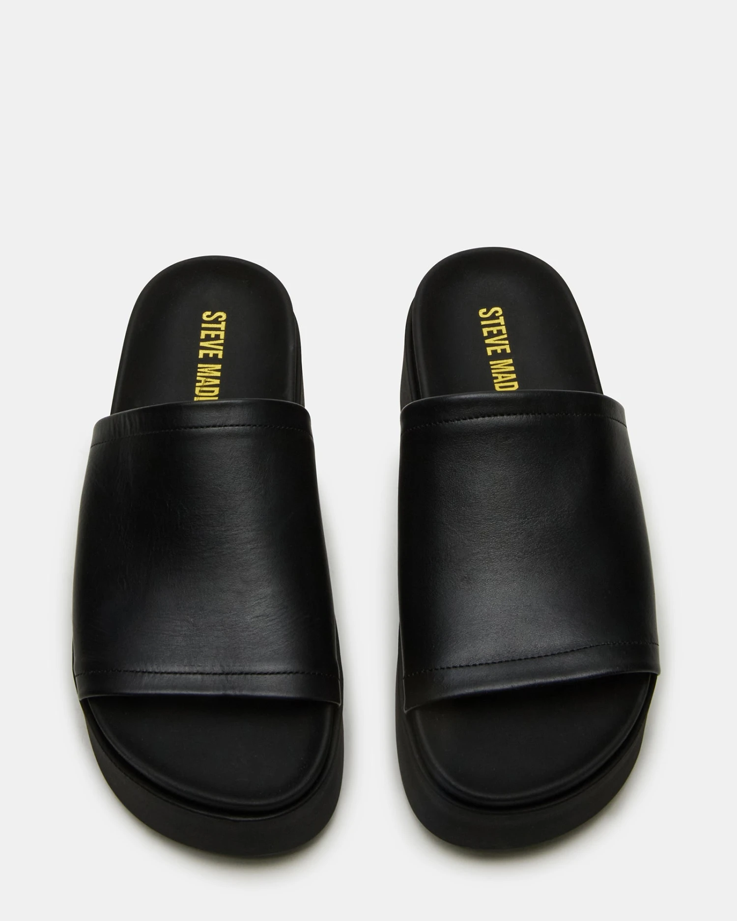 The ARWEN slide sandal features a platform flatform design and rounded toe for a trendy yet comfortable look. With a chunky footbed, this sandal offers both style and support. Elevate any outfit with these versatile and chic sandals.