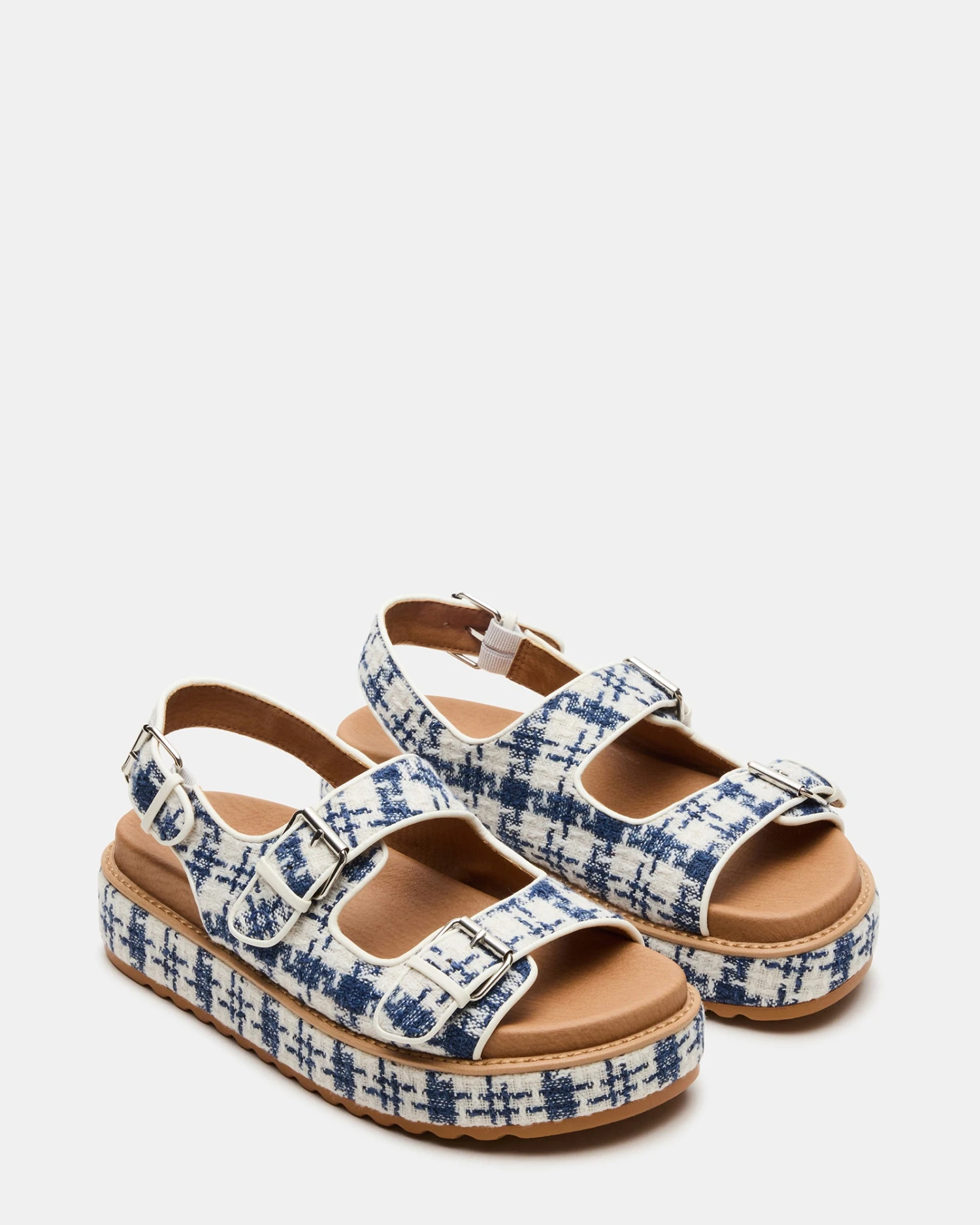 The BIGMONA2.0 BLUE/WHITE platform sandal features a flatform footbed that combines style with superior comfort. Its elevated sole provides added height and stability, making it ideal for all-day wear. Designed with a chic color scheme, this sandal is perfect for those seeking a modern, versatile look without compromising on support.