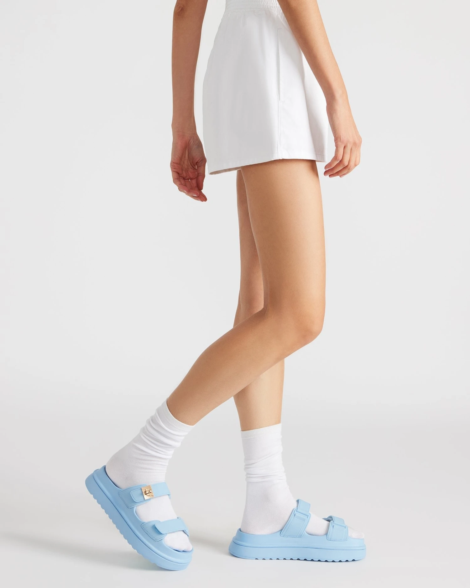 Elevate your style with the BIGSCHMONA JELLY platform slide sandal. The flatform design provides a modern twist while the turn-lock hardware accent adds a touch of sophistication. Step up your fashion game while enjoying the comfort and stability of this versatile shoe.