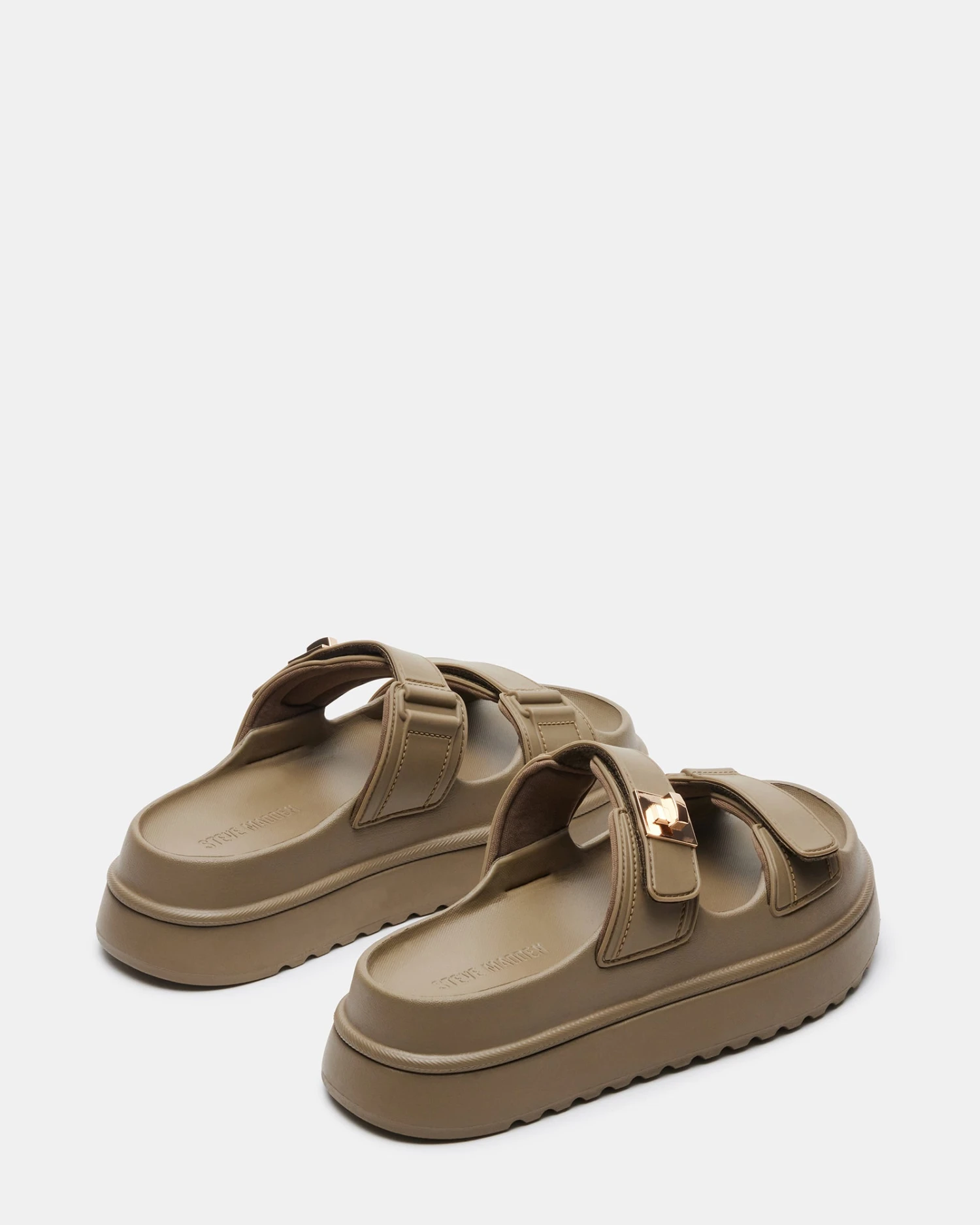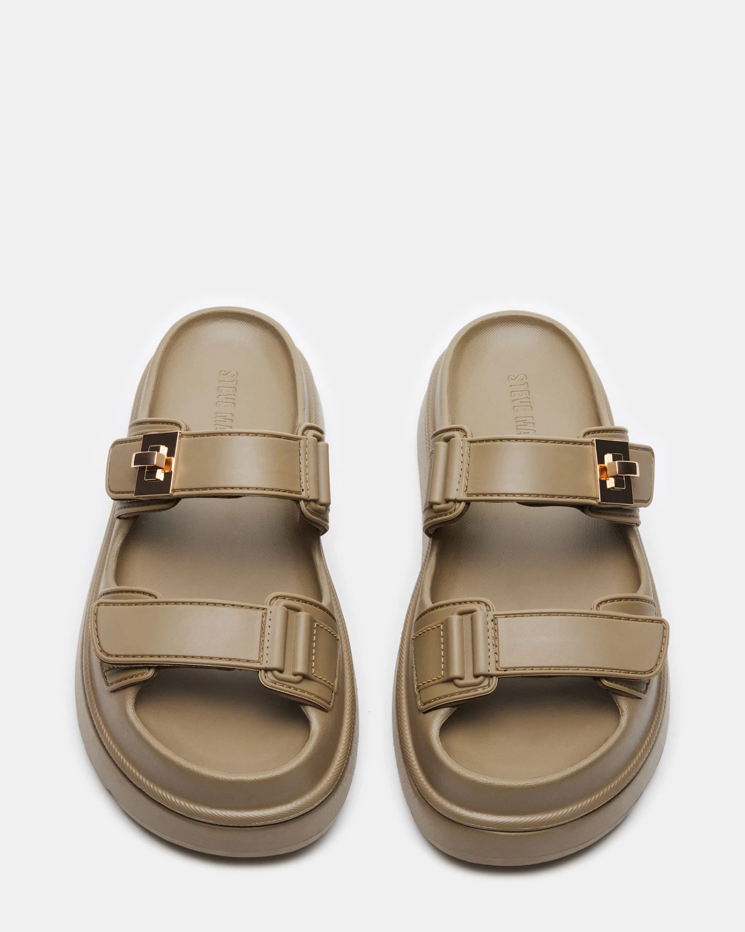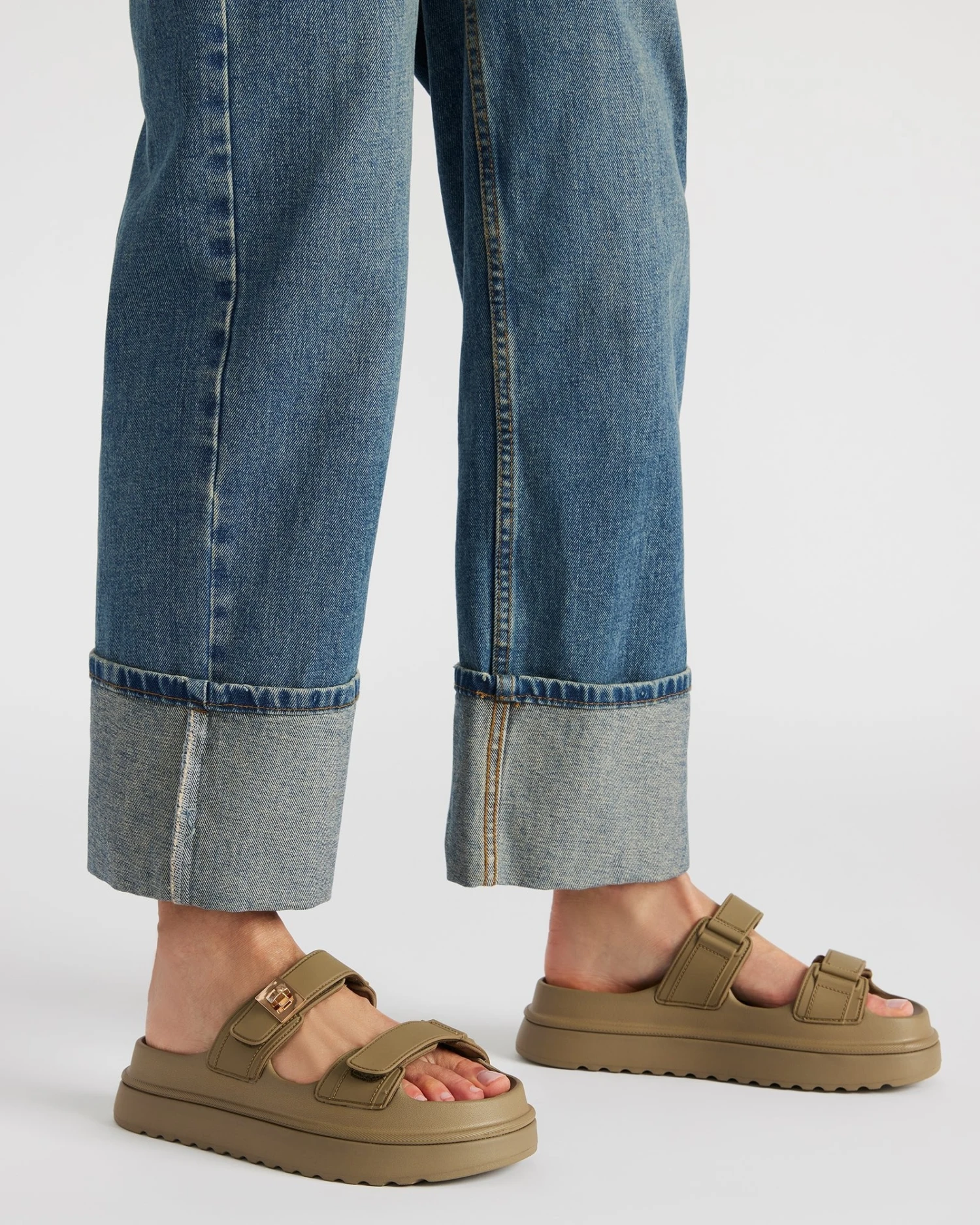 Elevate your style with the BIGSCHMONA JELLY platform slide sandal. The flatform design provides a modern twist while the turn-lock hardware accent adds a touch of sophistication. Step up your fashion game while enjoying the comfort and stability of this versatile shoe.