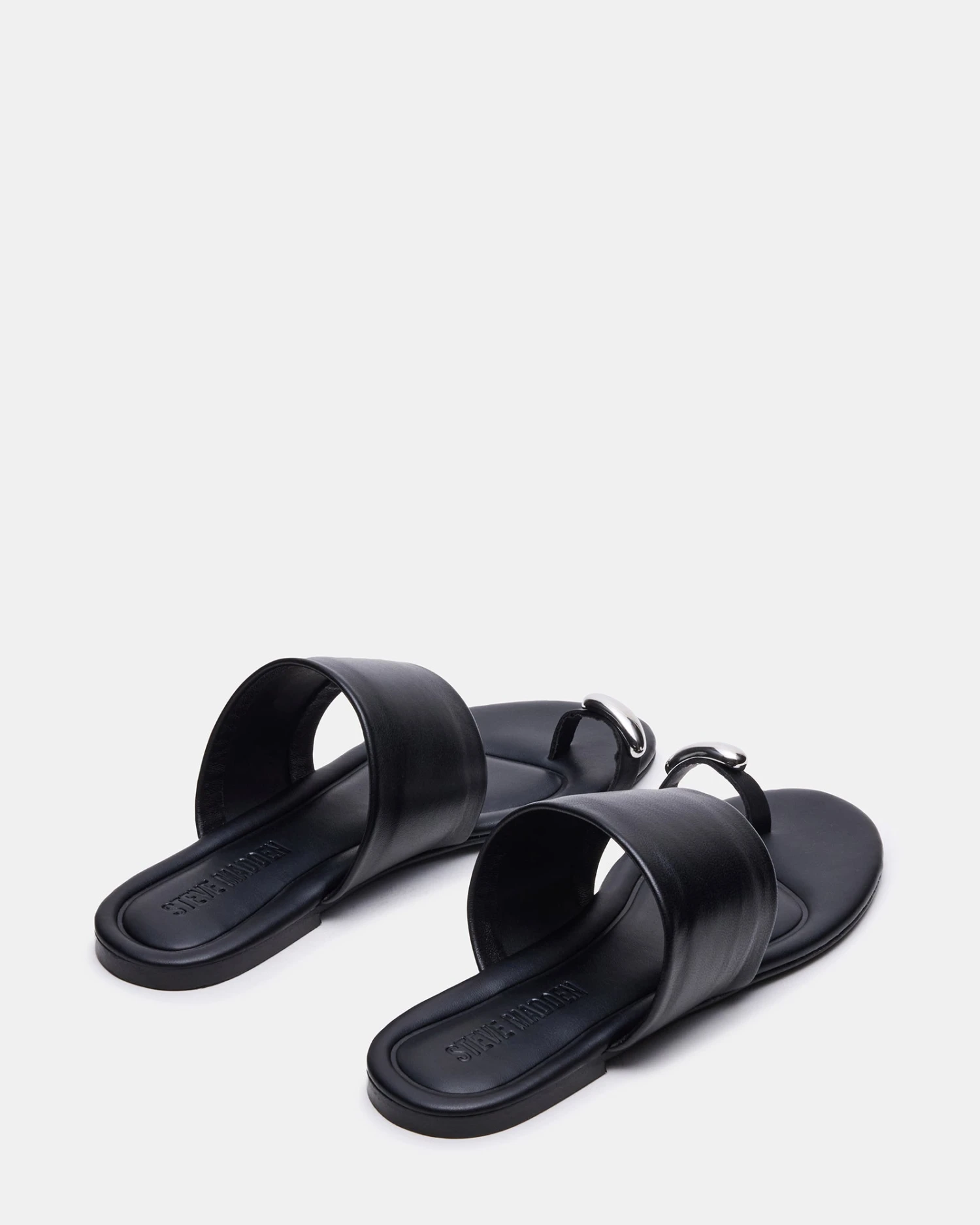 The DECADENT slide sandal features a flat, rounded toe design paired with a distinctive toe ring detail, offering a modern twist on classic comfort. Its sleek silhouette ensures effortless style, making it an ideal choice for both casual and refined looks. Crafted for ease and elegance, this sandal balances unique design with everyday wearability.