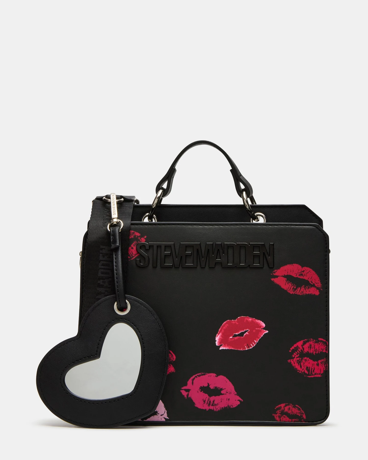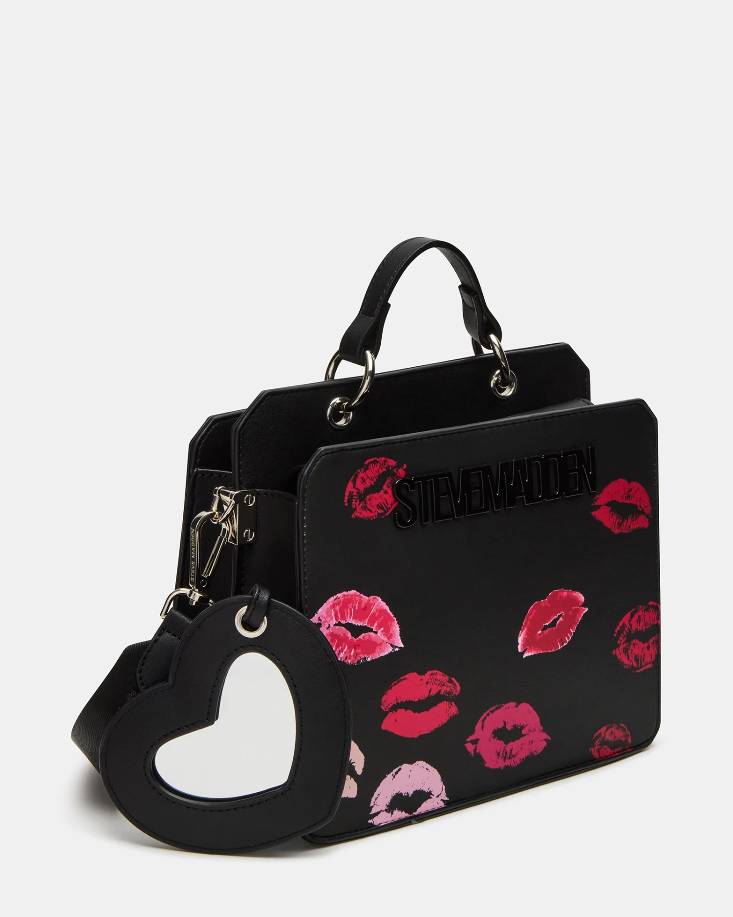 Expertly crafted from durable materials, the EVELYN KISSES top-handle bag combines style and functionality. Its structured design features multiple compartments and a zipper closure for easy organization, while the removable heart charm adds a touch of personality. With a detachable crossbody strap, this bag is versatile and perfect for everyday use.