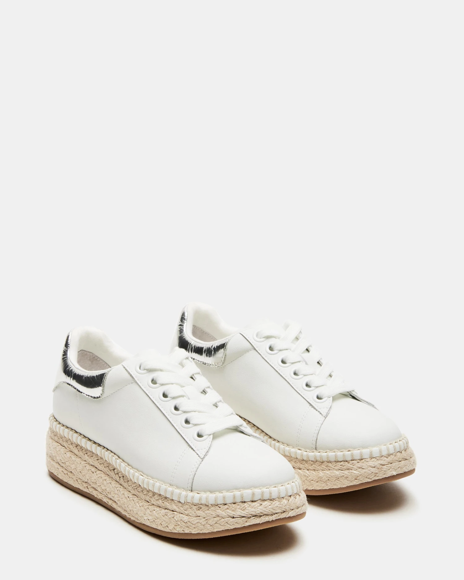 Step up your shoe game with GLANCE! These lace up sneakers are made with high-quality leather and feature an espadrille bottom for a unique touch. The color pop detail adds a playful element to your look. Perfect for adding some personality to any outfit!