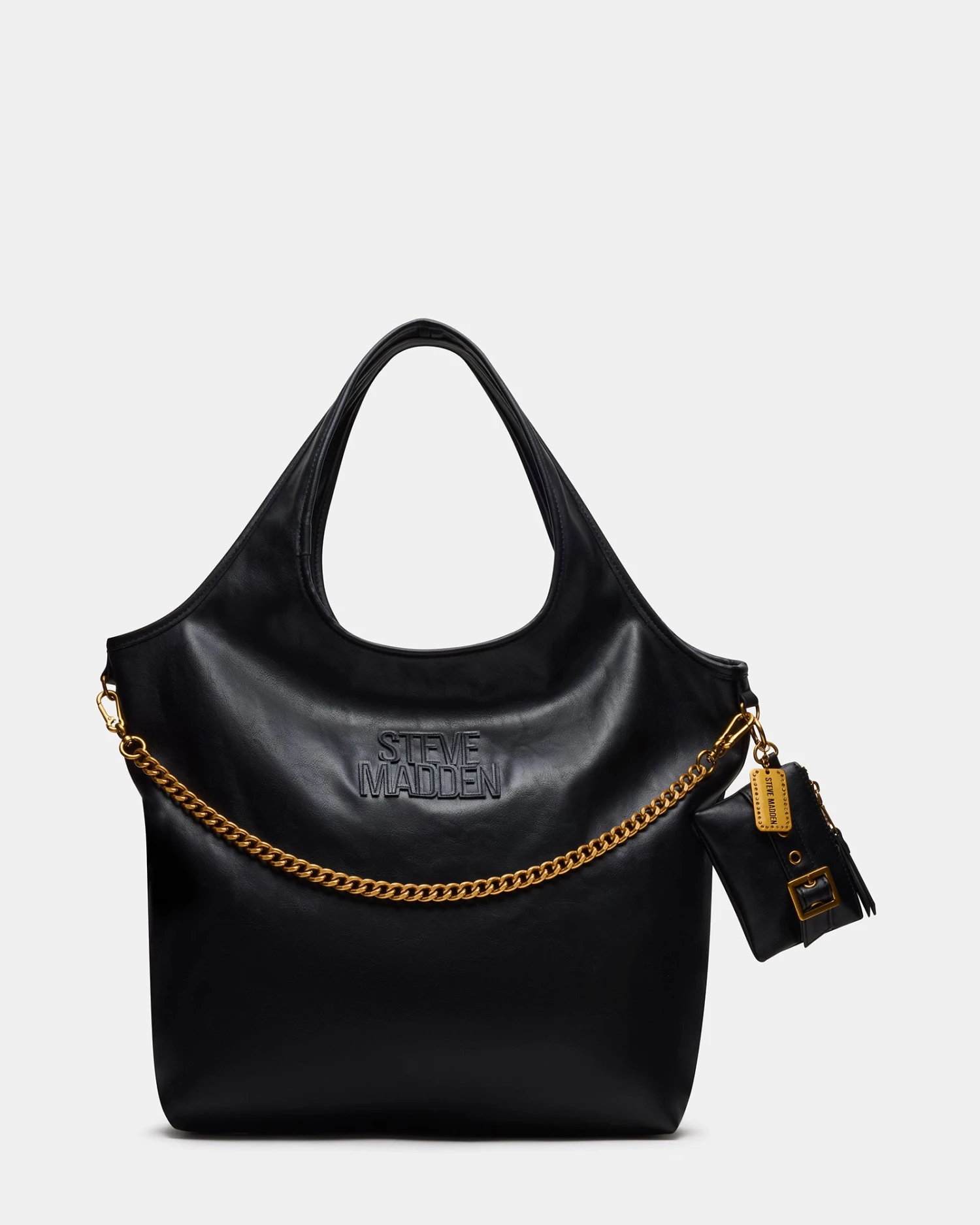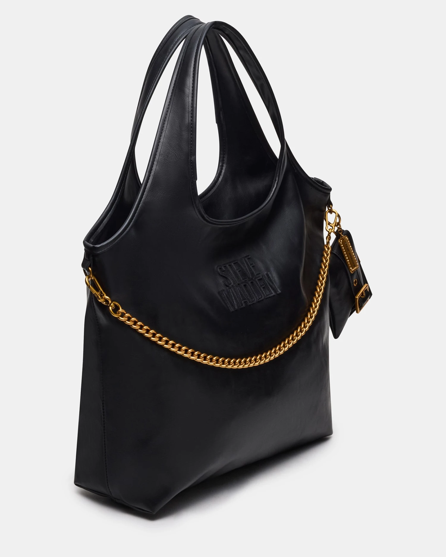 Expertly crafted, the GRUNGY bag features a soft, slouchy, large tote silhouette with sophisticated functionality. The detachable curb chain and zipper pouch charm add versatility, while the encrusted dog tag logo patch provides distinctive branding. Interior organization compartments accommodate a large laptop with ease. The monochrome self-logo detailing completes this practical yet fashion-forward accessory.