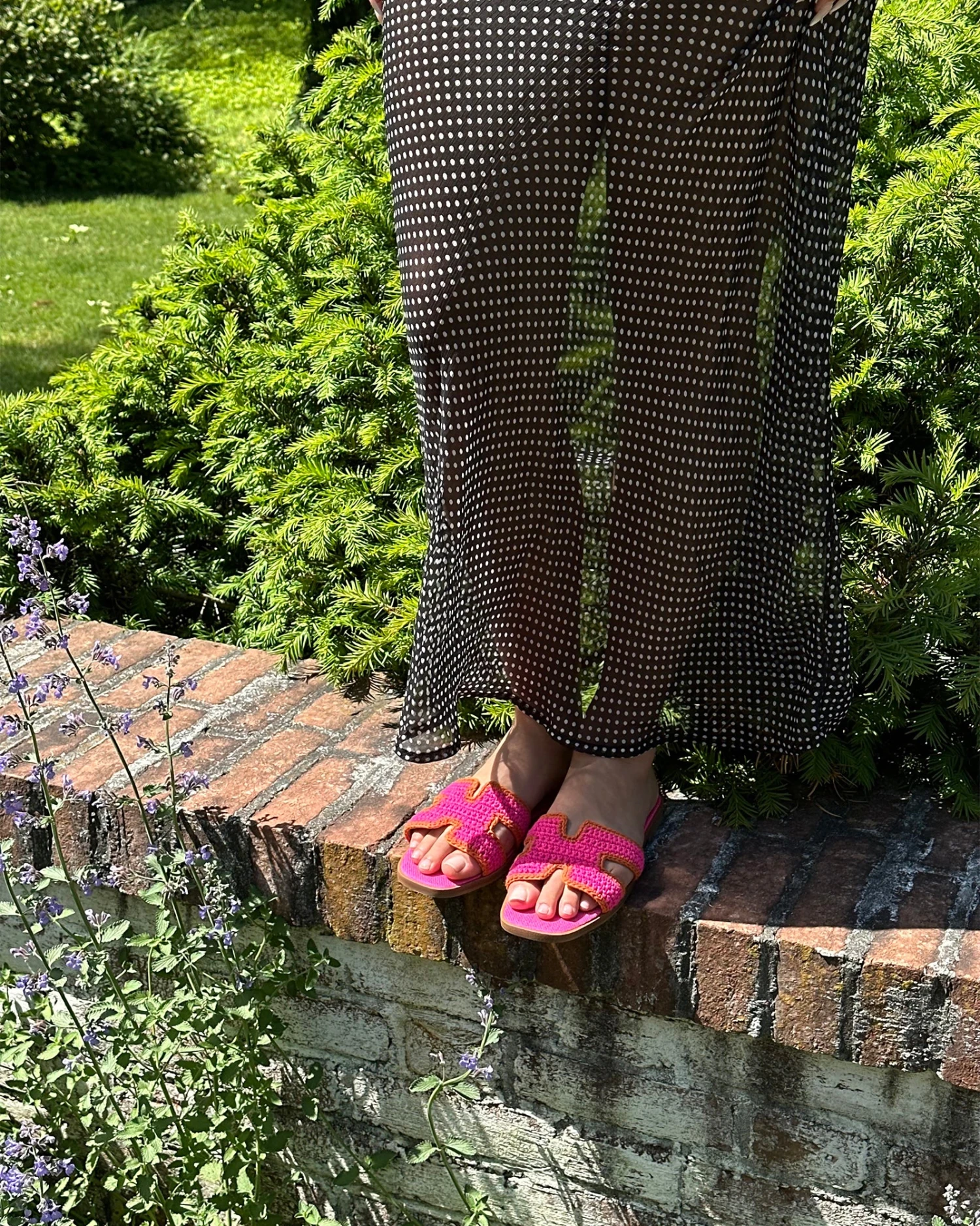 Geometric cutouts on the wide single strap of the HADYN slide give this flat sandal design a fresh feel.