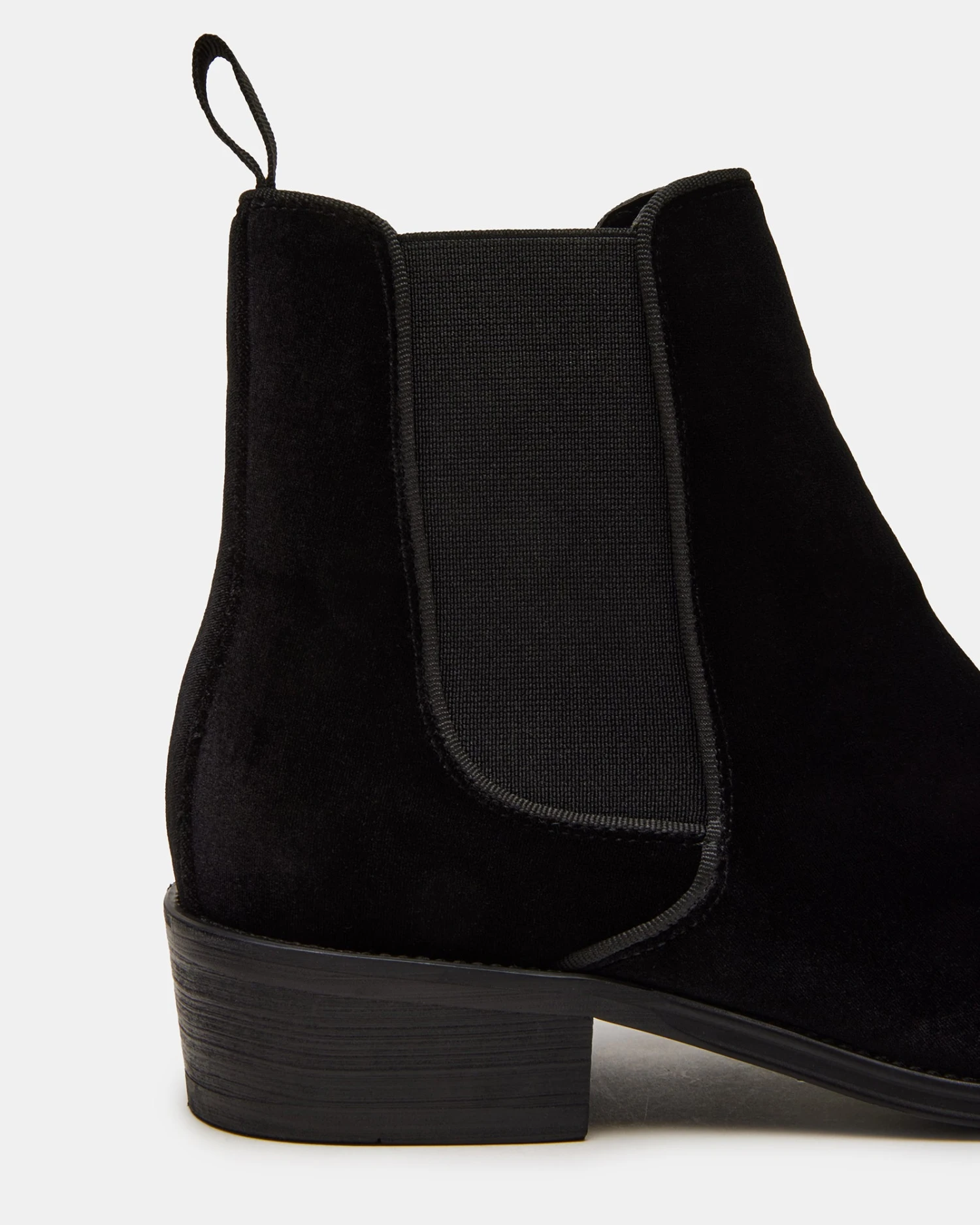 Expertly crafted with a plush velvet upper, the HAMLIN chelsea boot offers effortless style and comfort. Featuring pull-on closure with elastic core insets and a convenient pull tab on the heel, these boots are perfect for easy on and off. Elevate your wardrobe with this must-have staple.