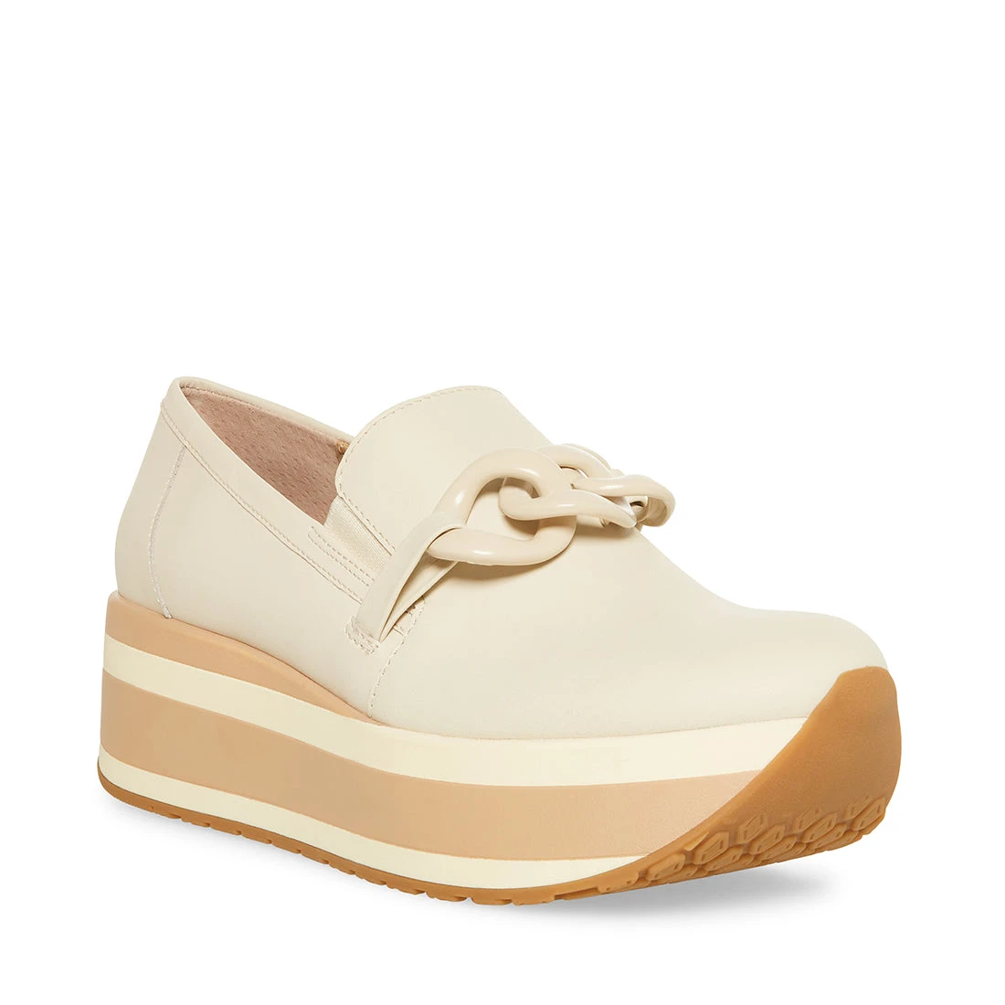 A substantial platform with a rocker toe and a sleek upper give the HAZE loafer its bold silhouette, with matching curb chain across the top finishing the look.