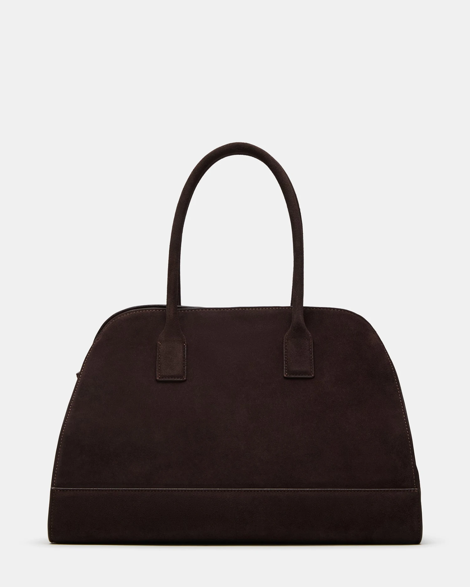 The HEIDEE bag is the ultimate everyday shoulder bag tote. Made with suede materials, it features an inside zip pouch for secure storage, a convenient snap summary closure, and stylish buckle detail on the shoulder straps. Stay organized and look fashionable with this must-have accessory.