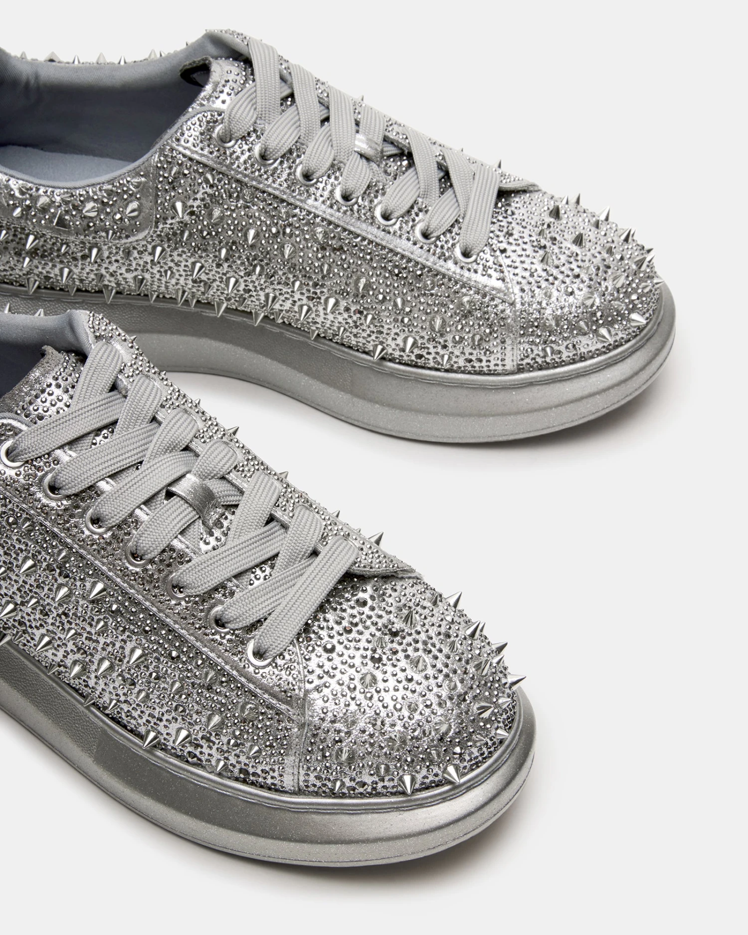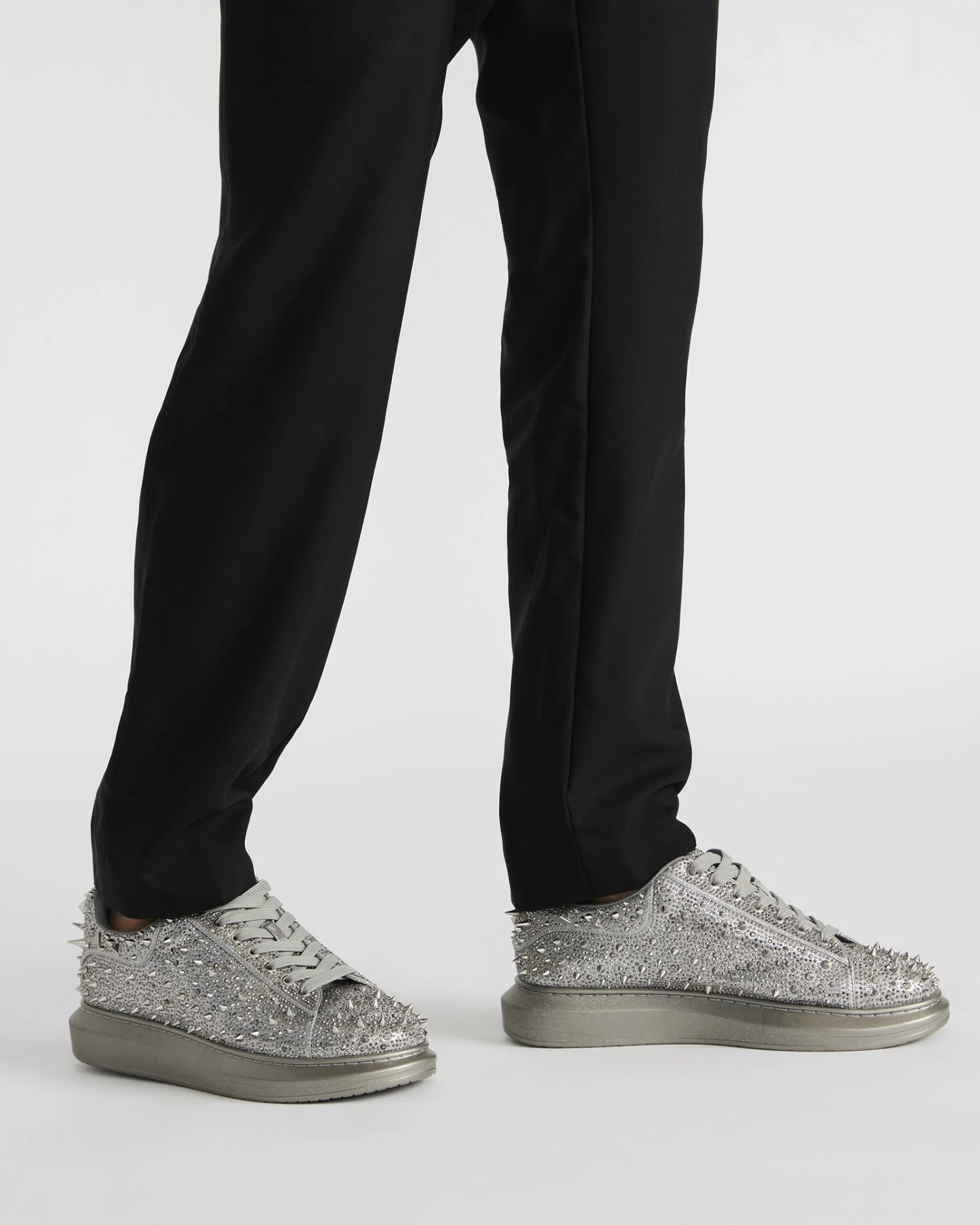 A chunky flat platform sole provides a solid foundation for the ICEBOX sneaker which features all over rhinestones in varied sizes for maximum bling effect.