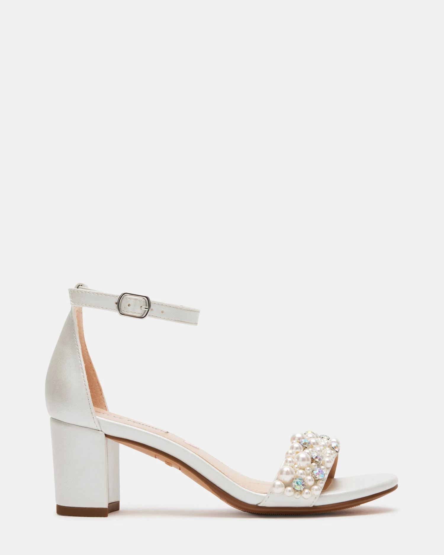 A glamorous kids’ sandal, CARRSON features a 2-strap design set on a low block heel for fuss-free dressy style.