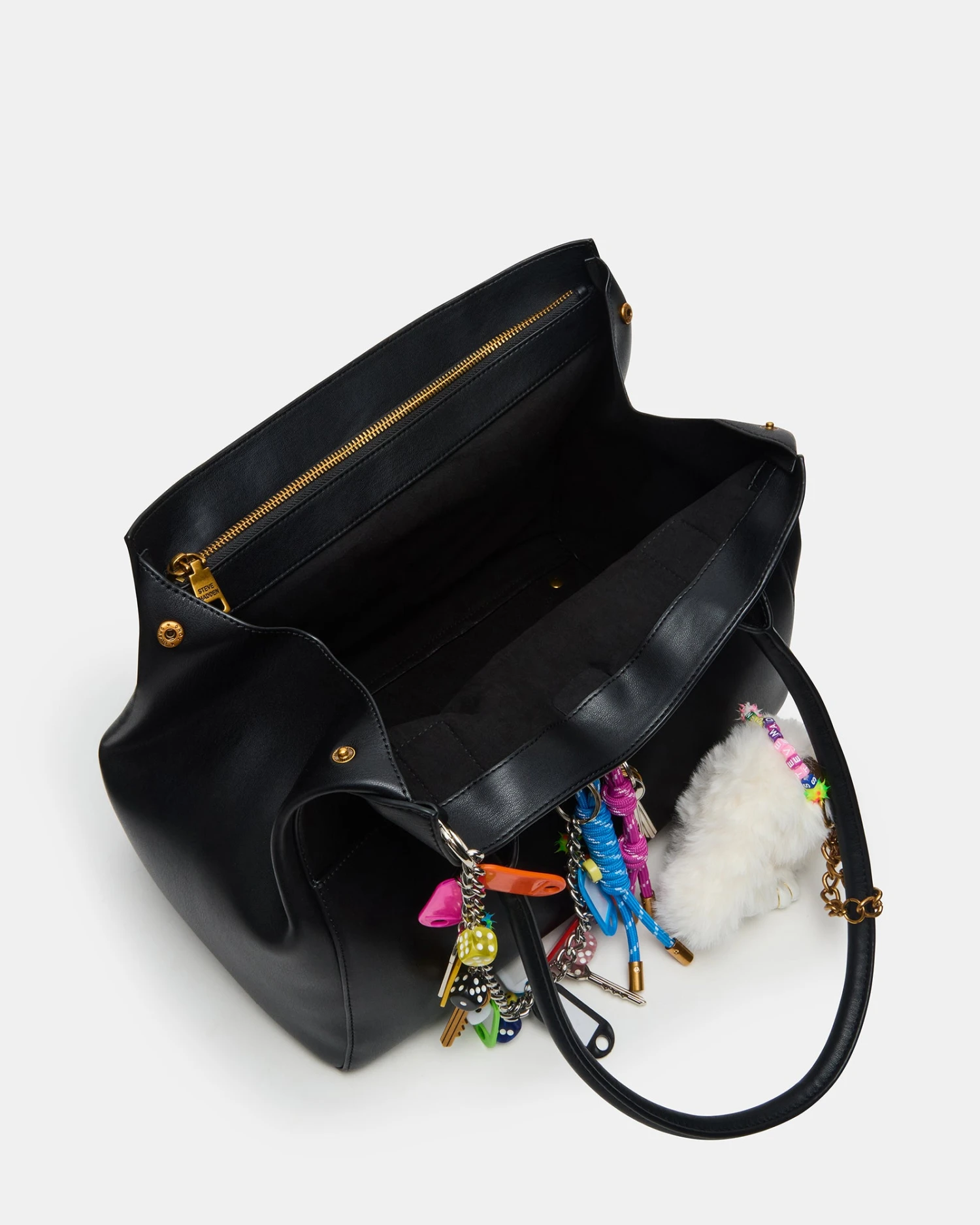 Introducing the LEILANI bag- a must-have handbag for any fashion-forward individual. This large tote features a detachable bunny bag charm and a playful multi-colored logo. The detachable swag chain adds a touch of versatility, while the adorable smiley face charm brings a pop of personality. Elevate your style with this statement piece.