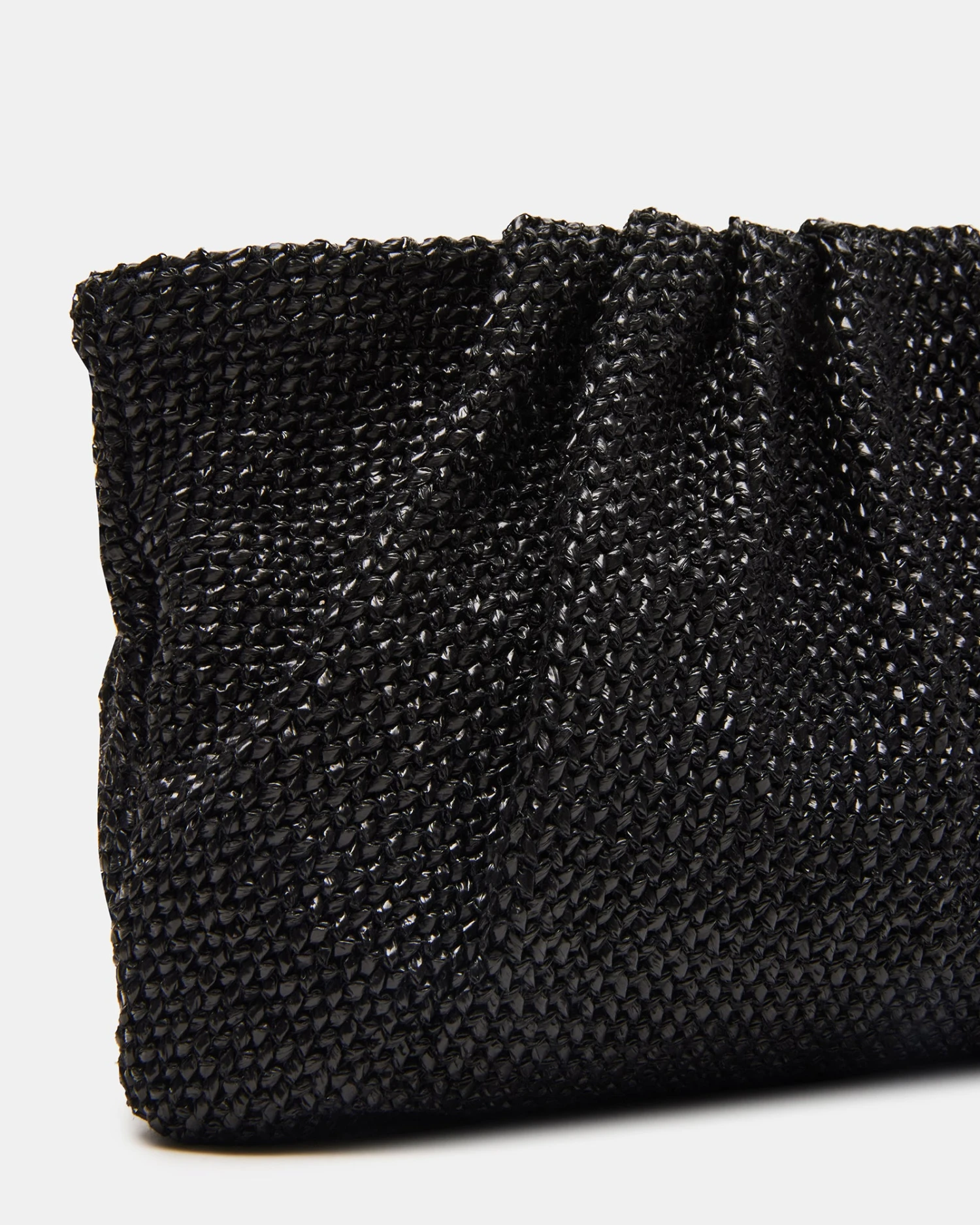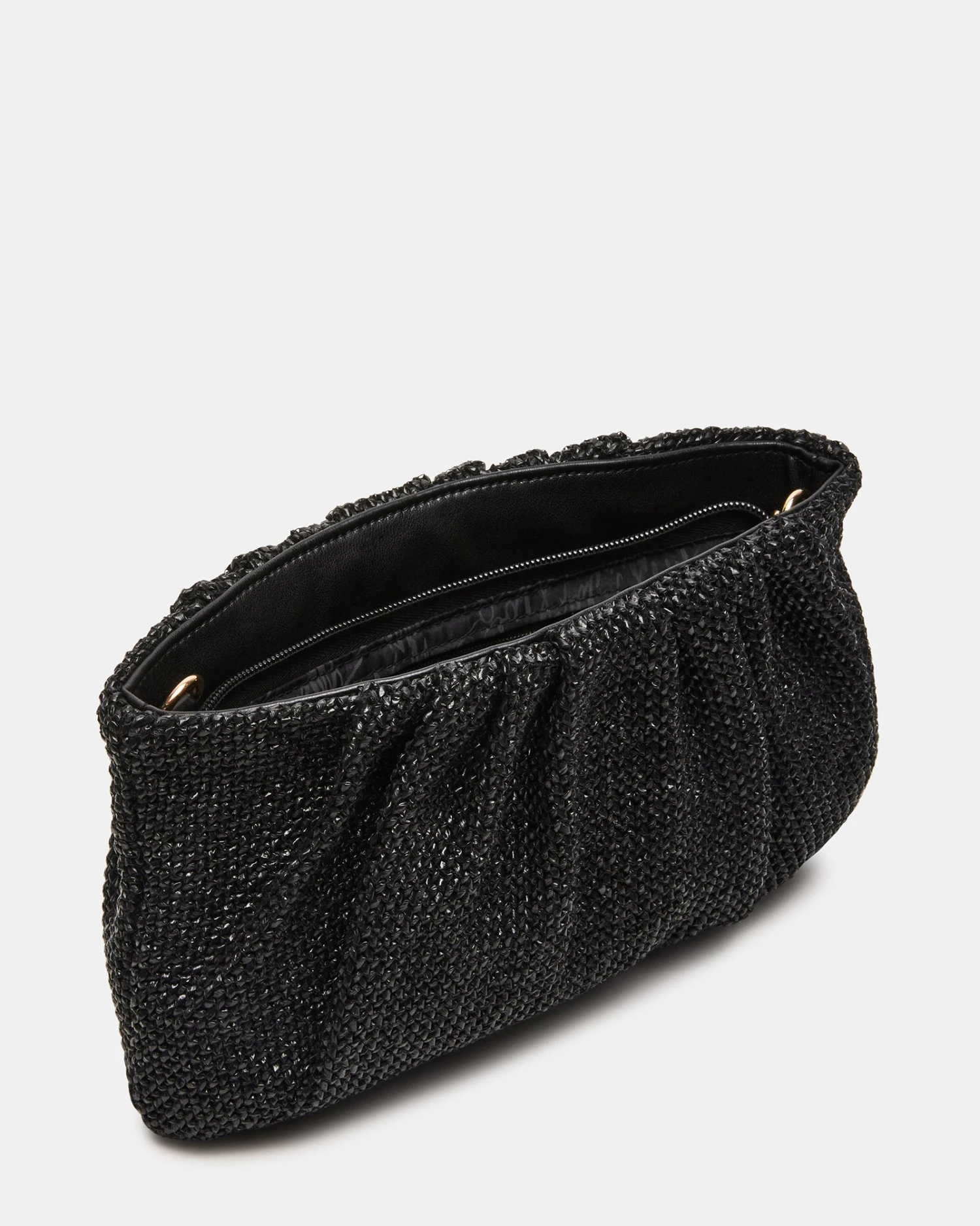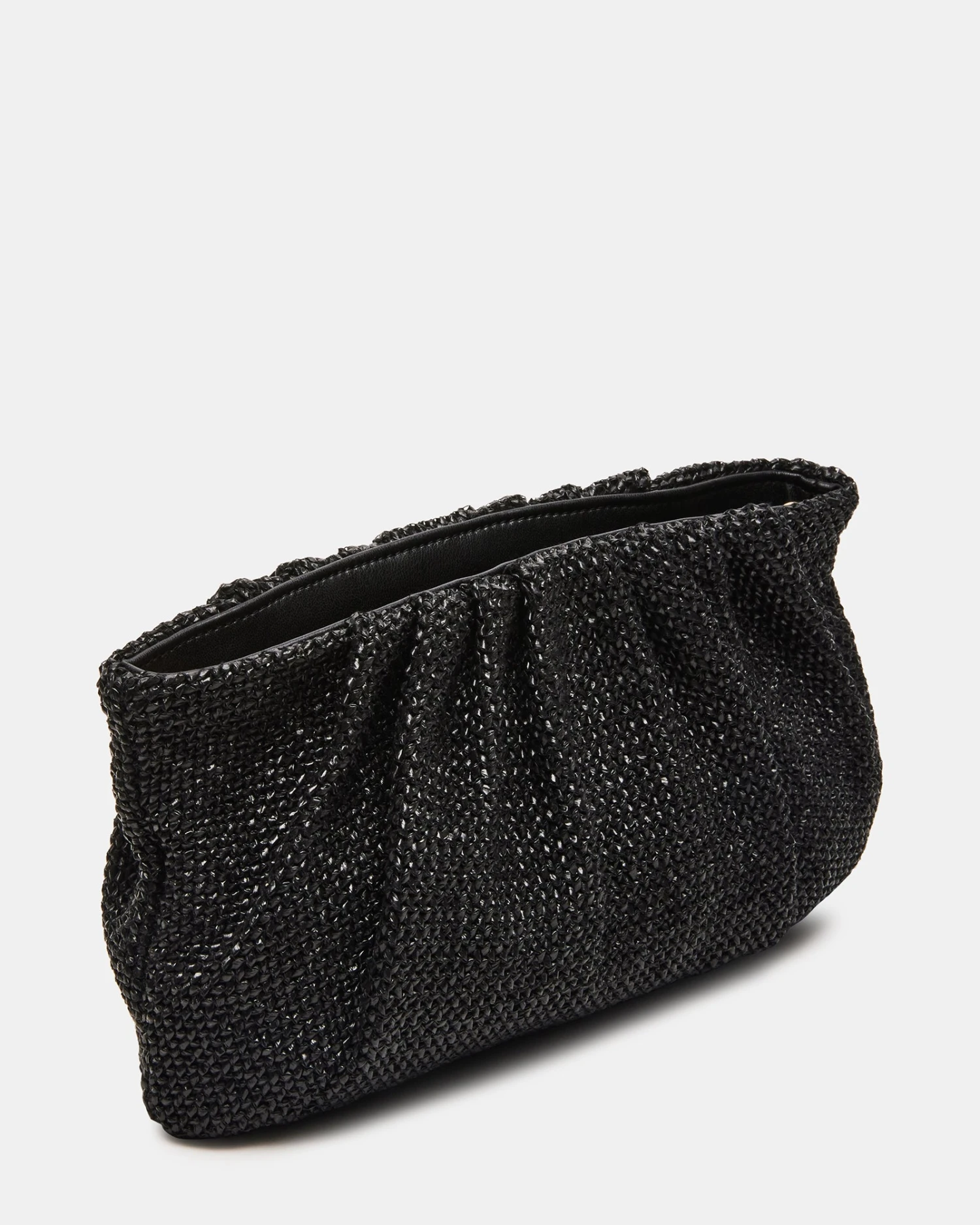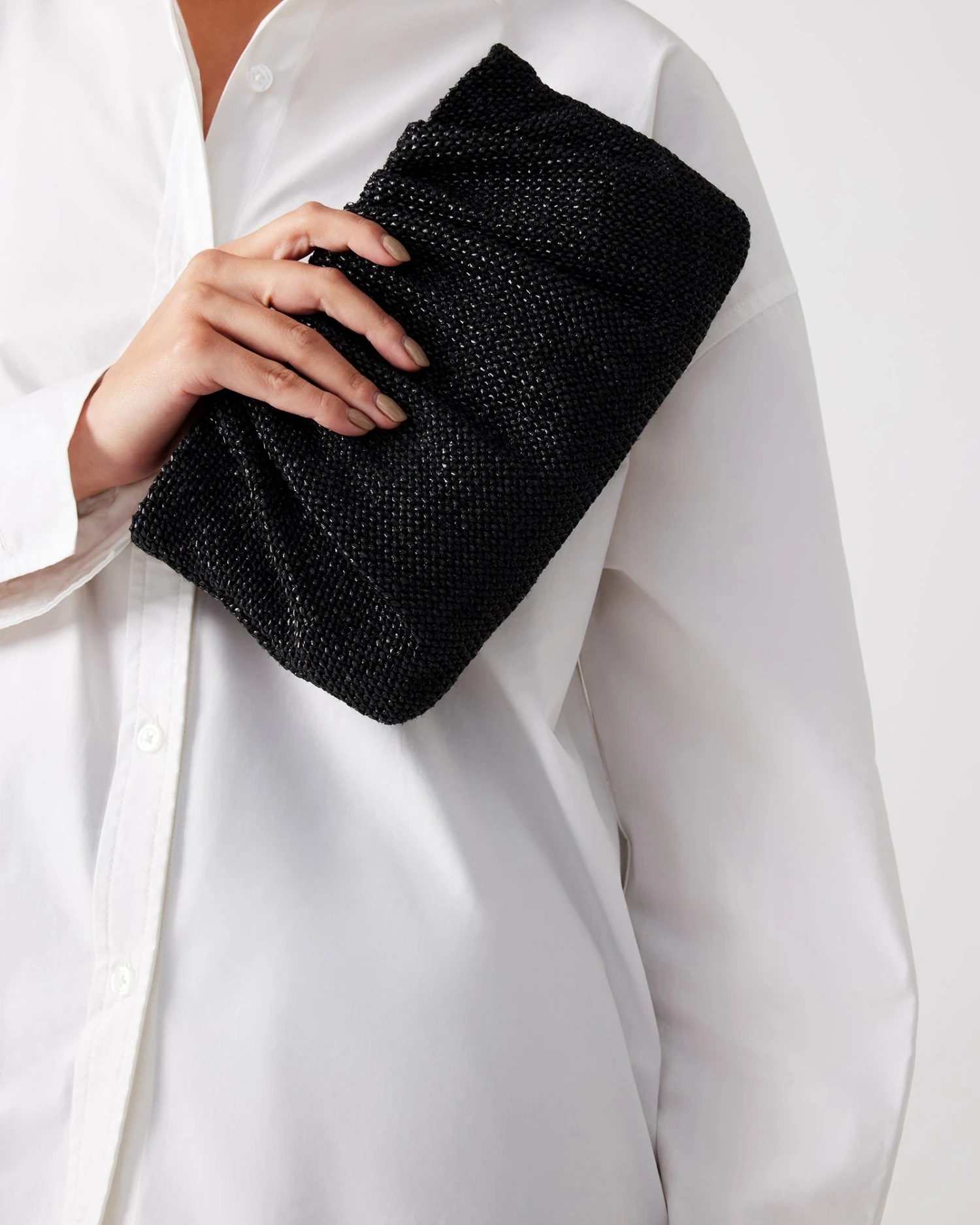 A tight raffia weave gives the LUCIA clutch bag subtle texture, gathered into pleats around the top for a classic retro-inspired silhouette.