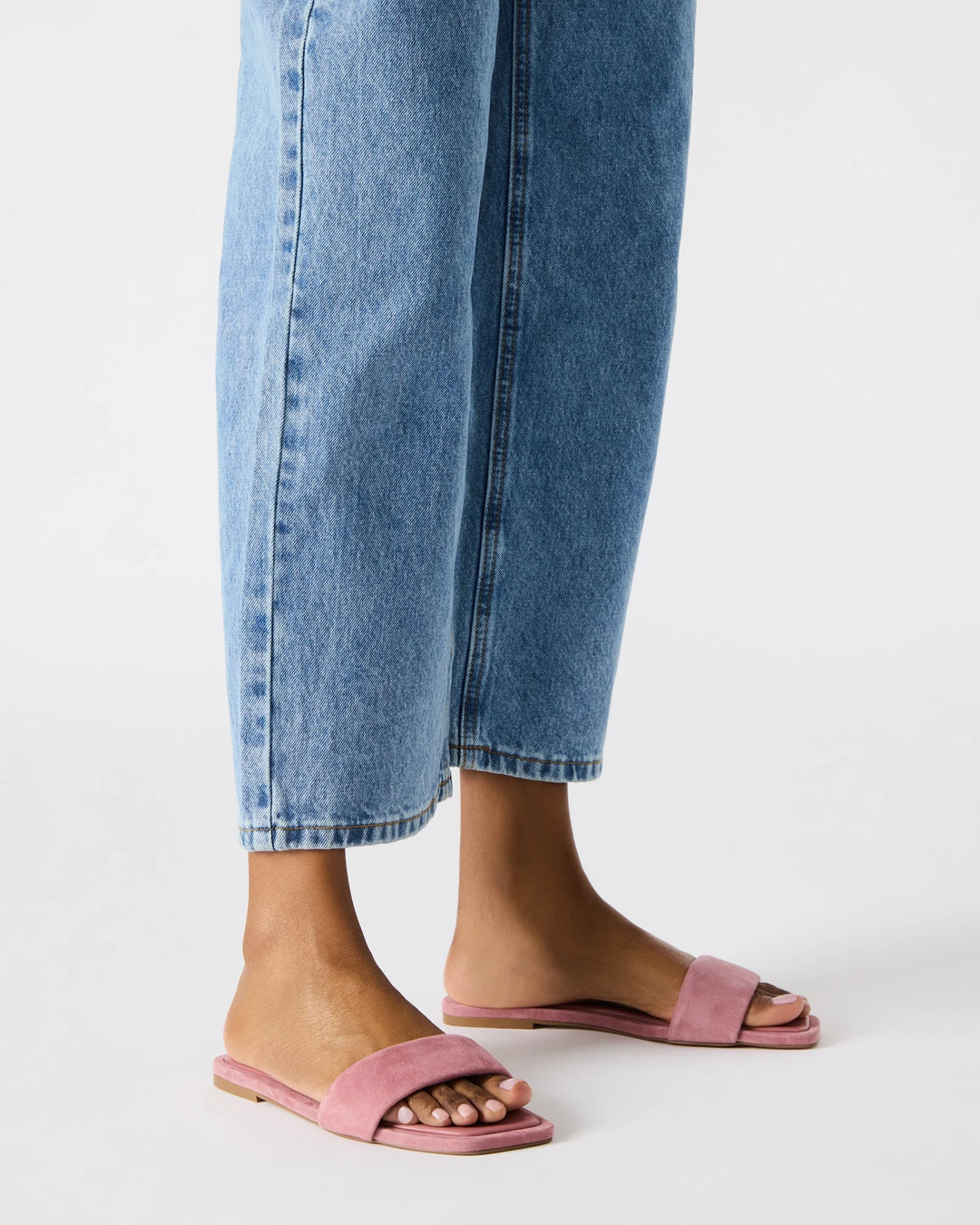 Maximize your comfort and style with LUMINA. This square-toe flat sandal features an easy slide style with suede materials making every step a statement. Elevate any outfit with these chic and versatile sandals.