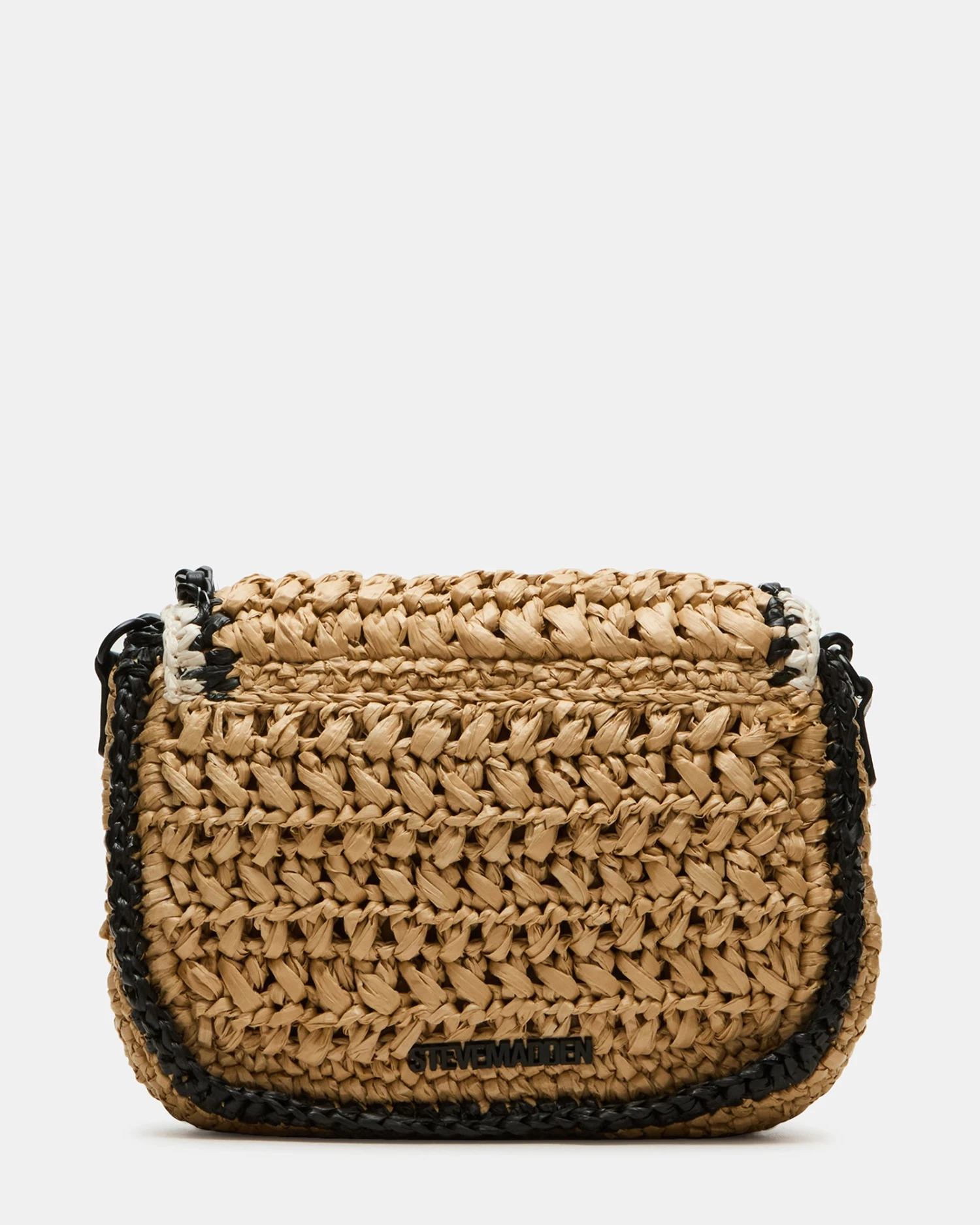 Introducing the MAR bag, a stylish and practical straw crossbody bag. It features a front flap with hidden push-lock closure, an interior front wall and pouch back wall, and a convenient chain crossbody strap. Stay organized and fashion-forward with this must-have accessory.
