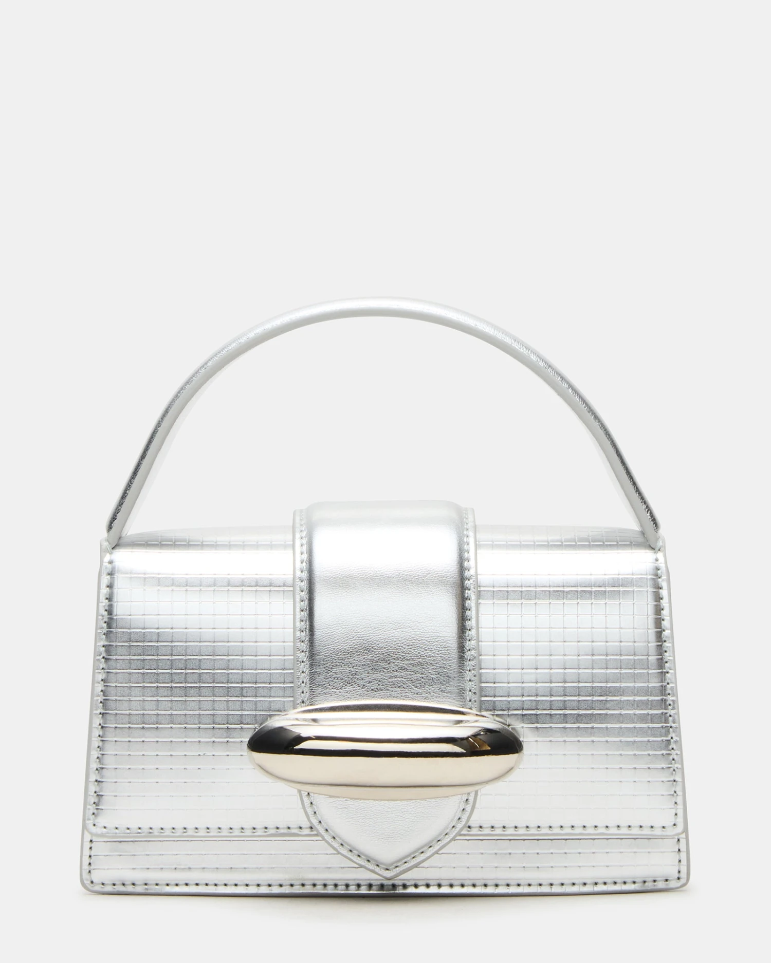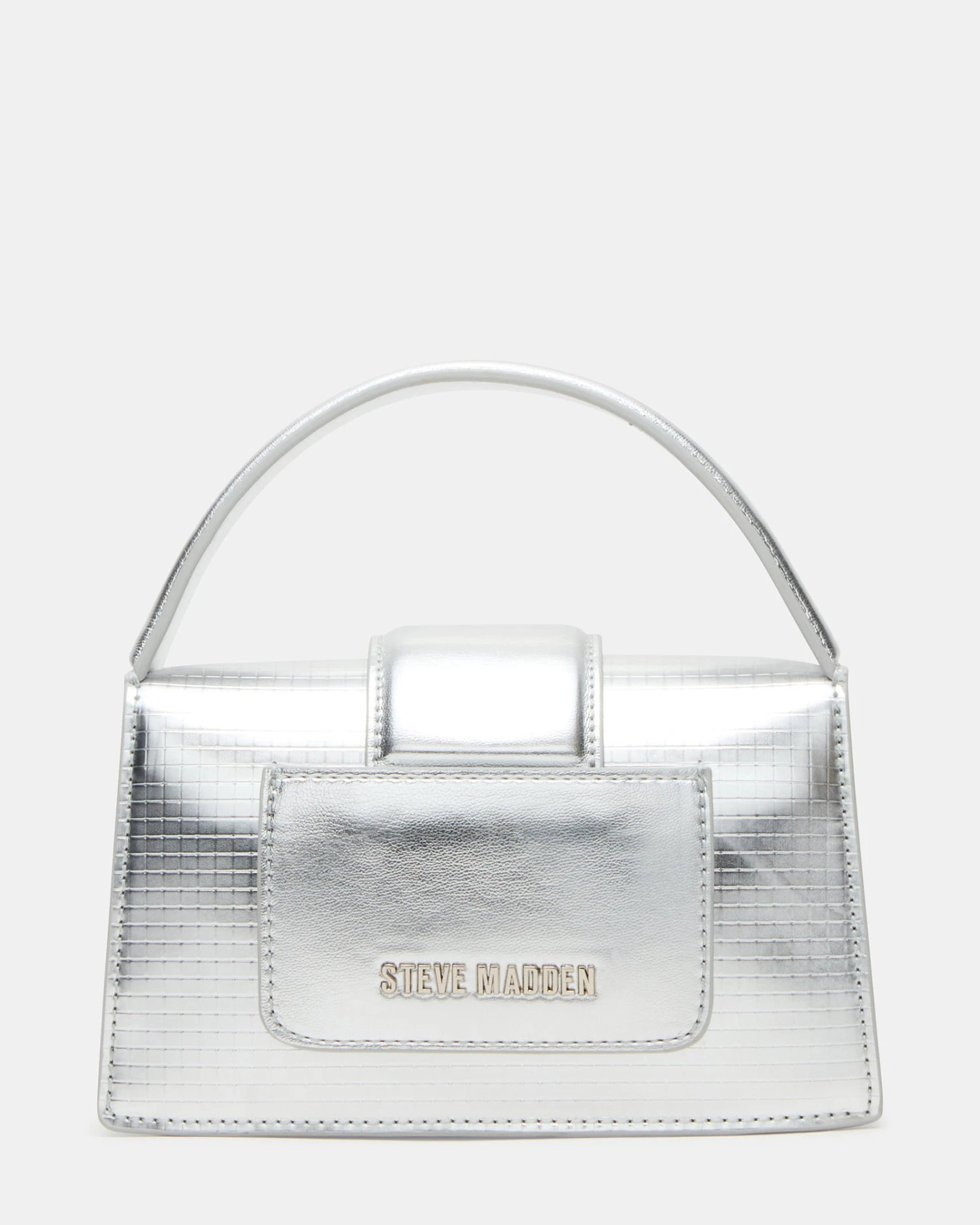This MISHELL BAG SILVER DISCO is a micro mini top-handle bag with a trapezoidal shape that effortlessly transitions from day to night. Perfect for going out, this bag is a must-have for parties and events. With its sleek and chic style, you’ll always make a fashionable statement.