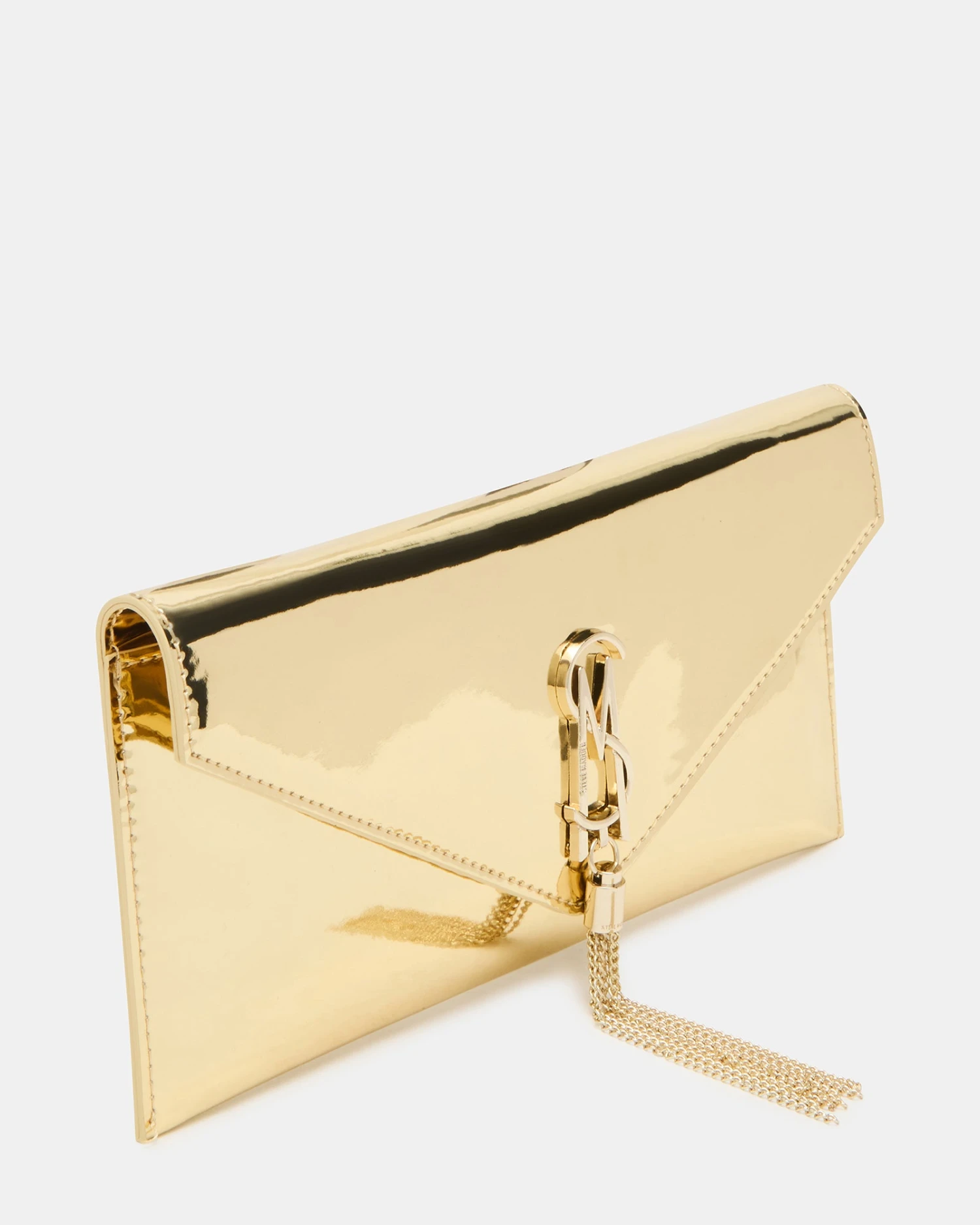 Expertly crafted in sleek black patent, the MORGANA bag offers both style and functionality. With its envelope design and magnetic snap closure, this clutch handbag is perfect for a night out. The interior includes a zipper wall and has enough room to fit a large phone. Finished with a chain tassel featuring the logo, it’s a must-have accessory.