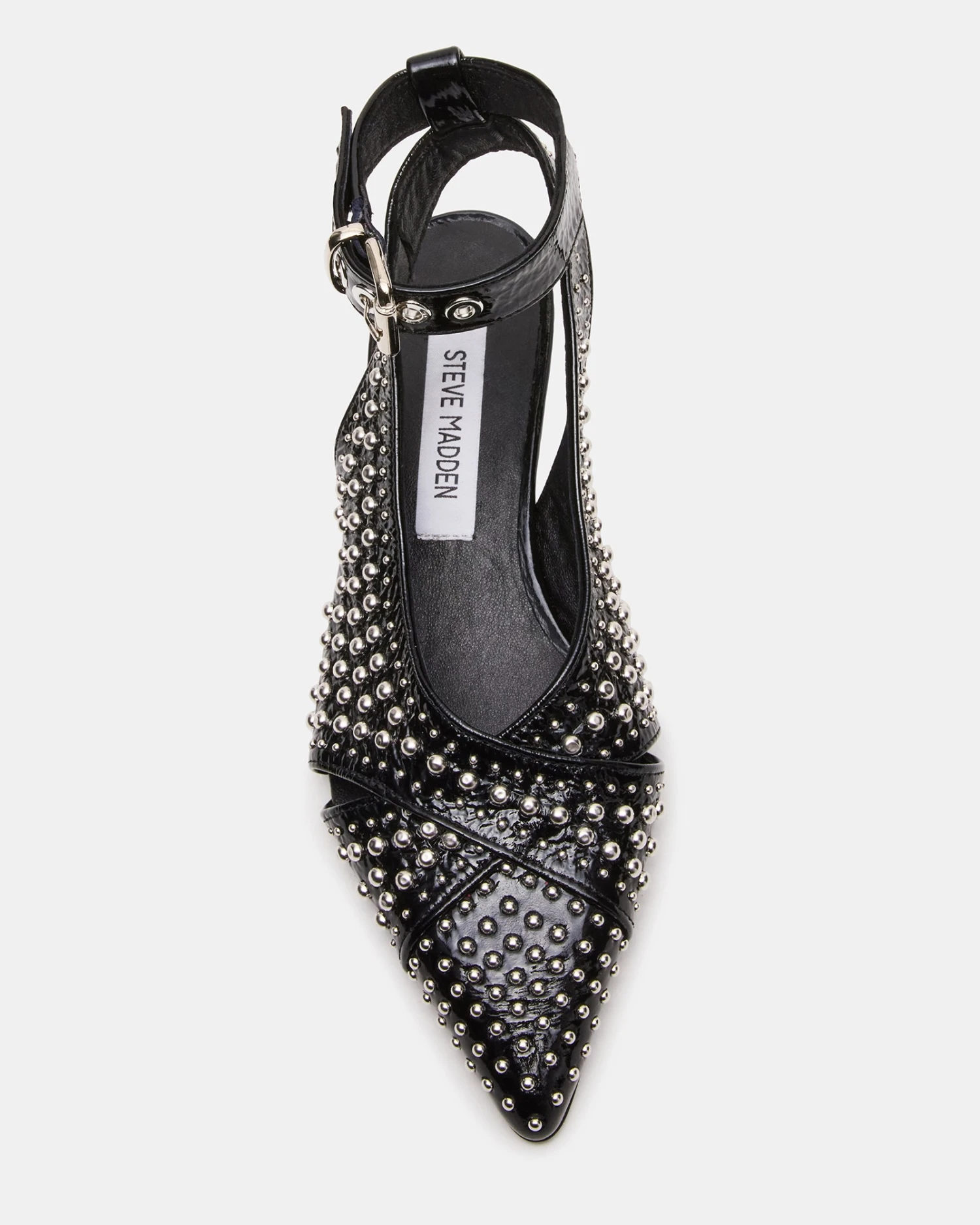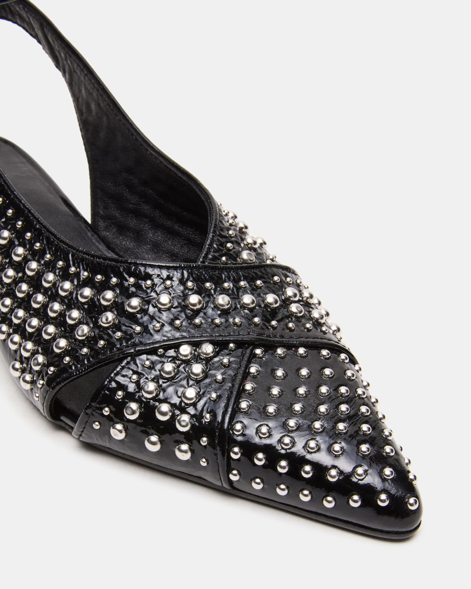 Exude confidence and sophistication with the NASH pointed-toe slingback flat. Adorned with stud embellishments, this sleek and stylish shoe is perfect for any occasion. Its pointed-toe design adds an elegant touch while the slingback provides a secure fit. Elevate your look with this must-have flat.