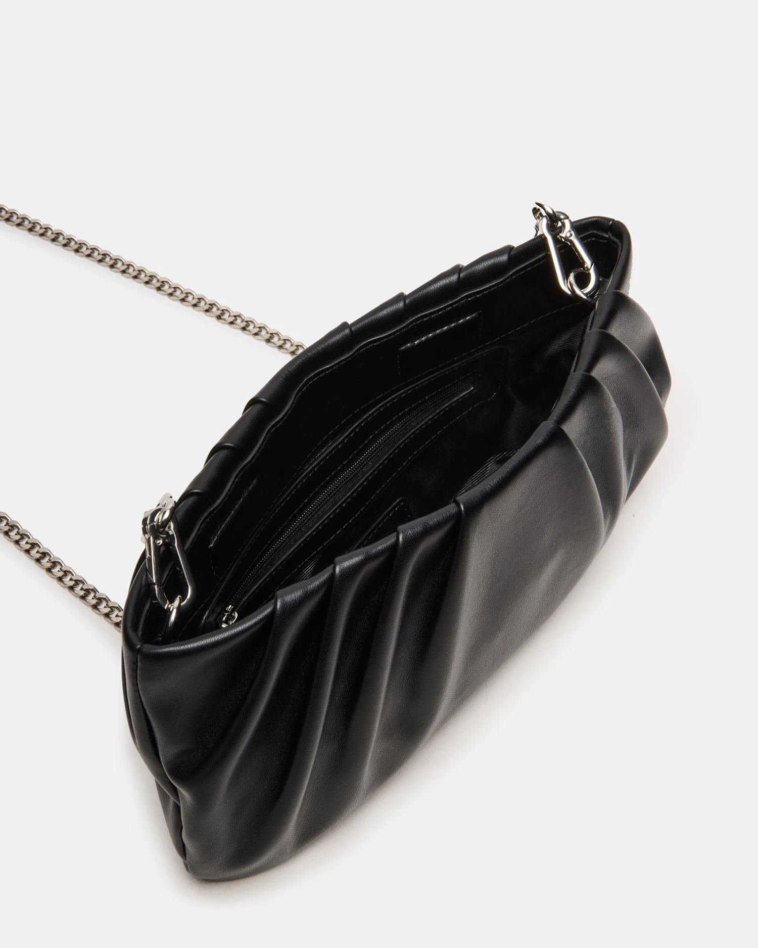 The NIKA bag is a versatile pleated clutch bag with a convenient chain crossbody strap and a hidden magnetic snap closure. It also features an interior zipper pouch for added organization. Perfect for any occasion, this bag offers both style and functionality.