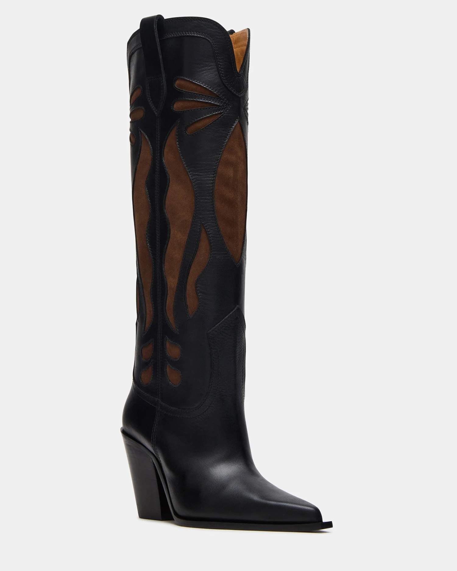 This sturdy knee-high boot features a pointed-toe design and Western-inspired style, making it a versatile addition to any wardrobe. The OUTLAW boot offers both durability and comfort for all-day wear. Elevate any outfit with this timeless and on-trend boot.