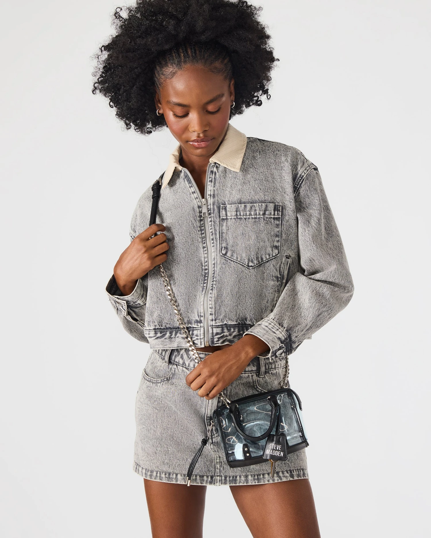 The RIVAL bag is a sleek mini clear crossbody designed to meet stadium requirements, ensuring hassle-free entry. Featuring convenient top-handles, it offers versatile carrying options for both hands-free and handheld use. Its compact size keeps essentials organized while maintaining a modern, minimalist look perfect for events and everyday outings.