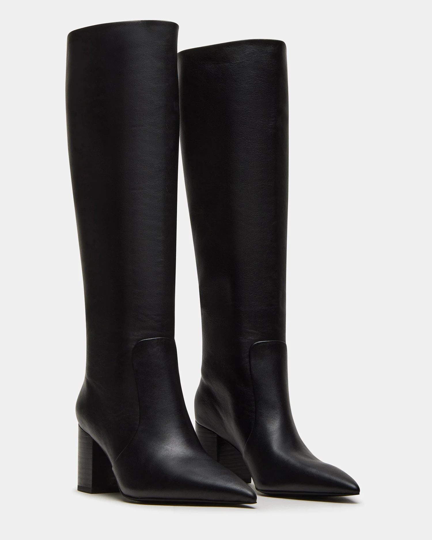 Elevate your style with the SKYLINE knee-high boots. These boots feature a sleek pointed-toe design and a sturdy block heel, providing both fashion and comfort. Made with high-quality materials, they are sure to be a staple in your wardrobe for years to come.