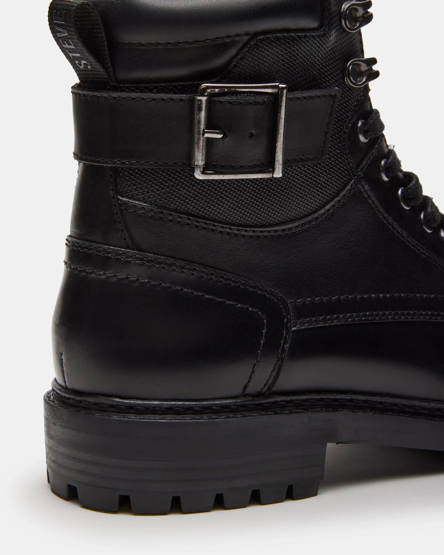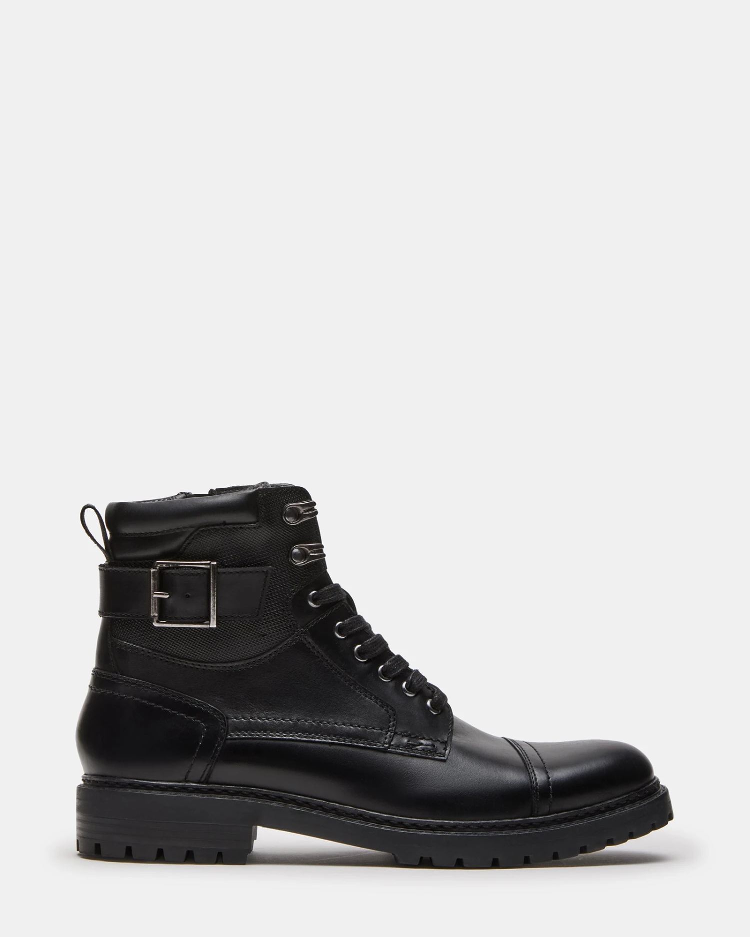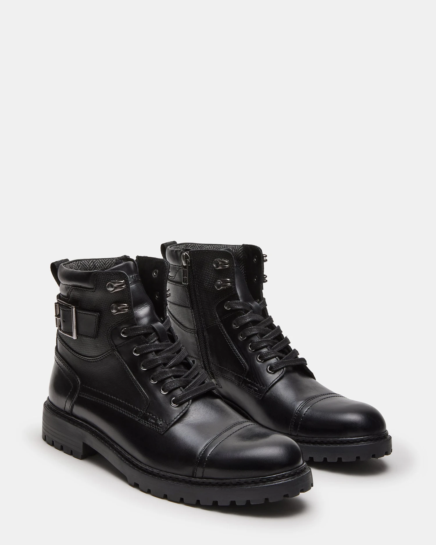 Introducing the SNYDER ankle boot, perfect for those looking for style and convenience. With buckle detail ornament and lace-up construction, this boot offers a trendy look while the inside zip and heel tab provides easy on and off. Upgrade your shoe collection with this must-have piece.