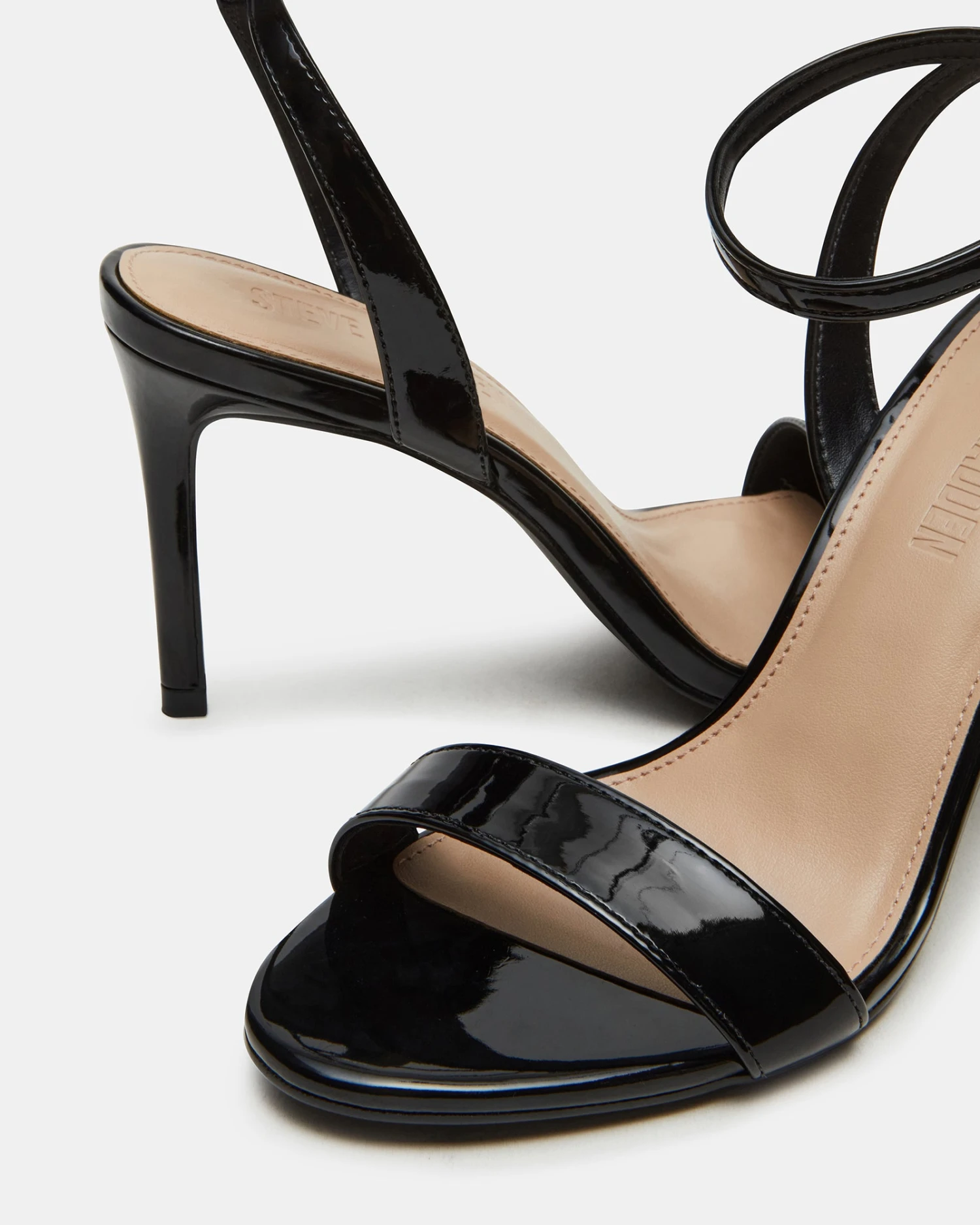 Expertly crafted for style and stability, the SUZIE stiletto heel features a secure ankle strap, strappy heel, and rounded toe. These design elements provide a confident stride and a chic look for any occasion.