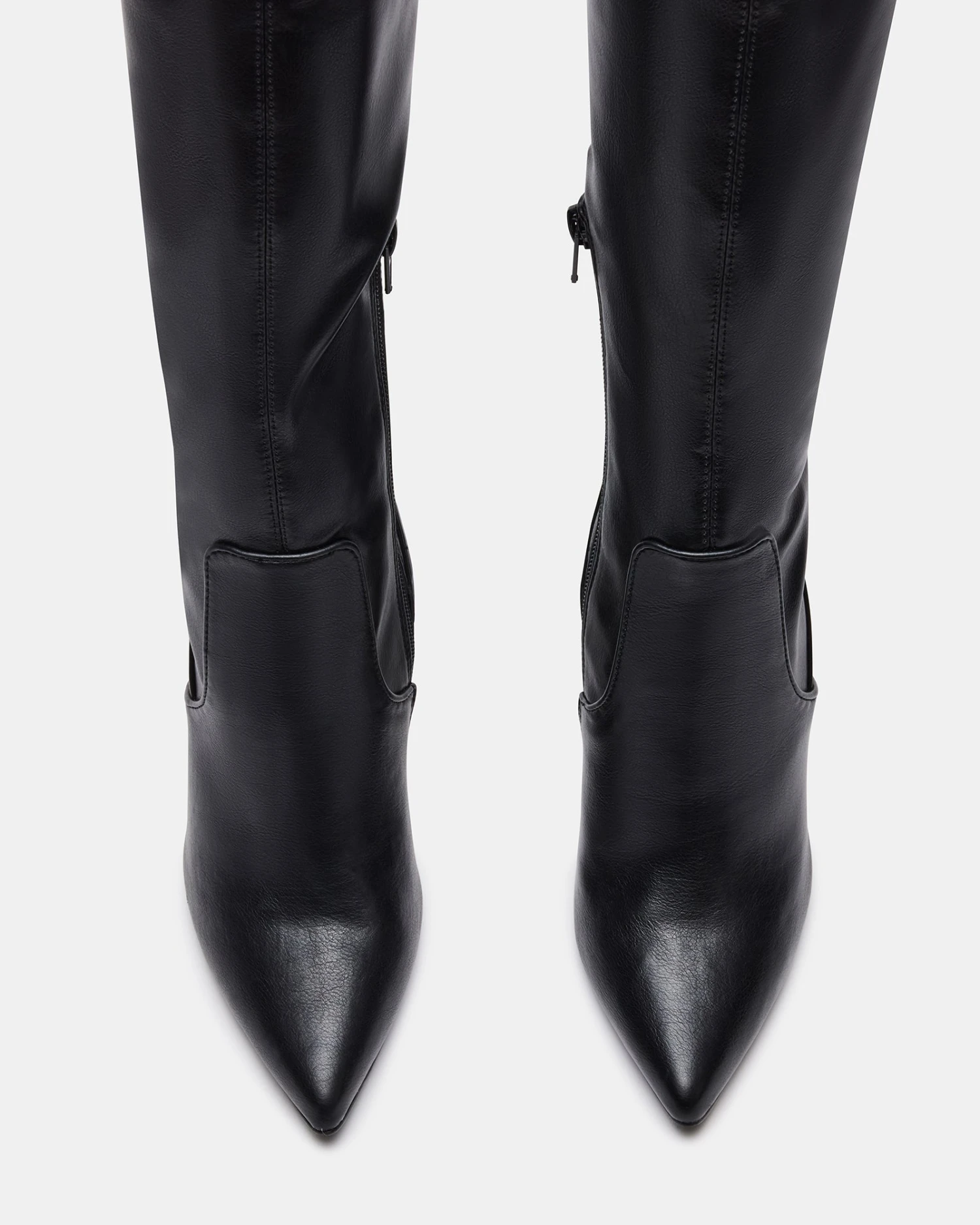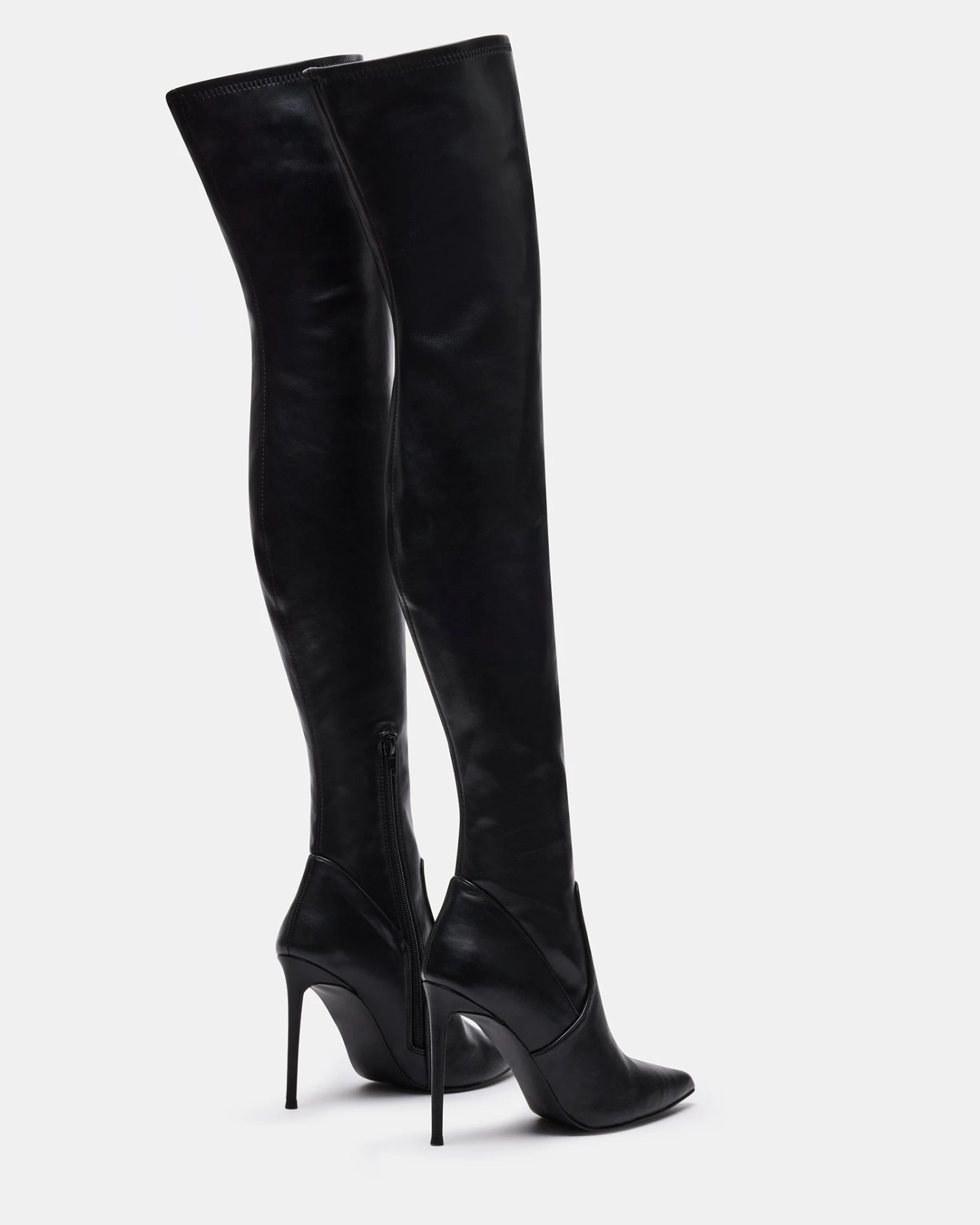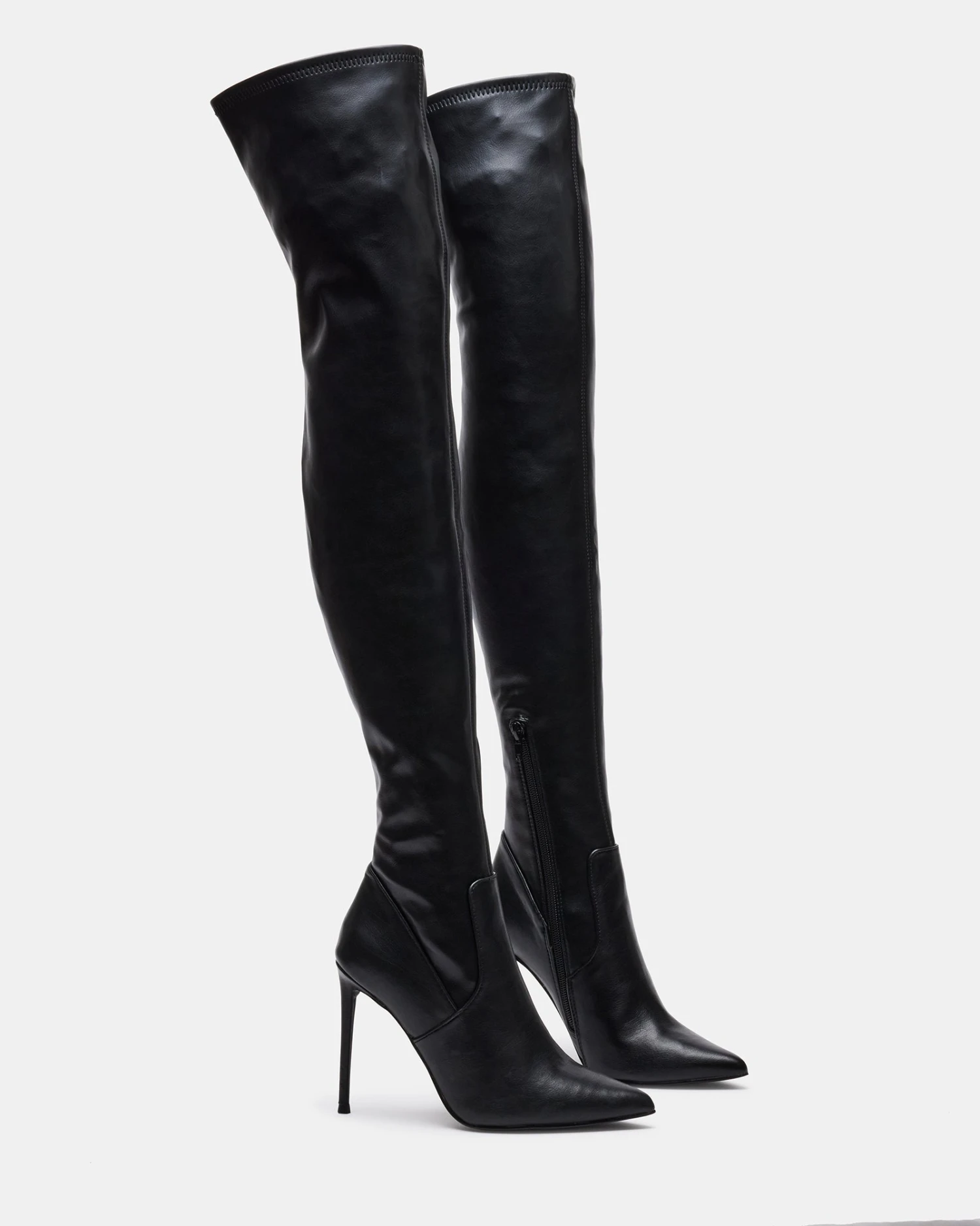 VAVA-voom! A towering stiletto heel, pointed toe and thigh-high shaft make this boot one of the season’s sexiest.