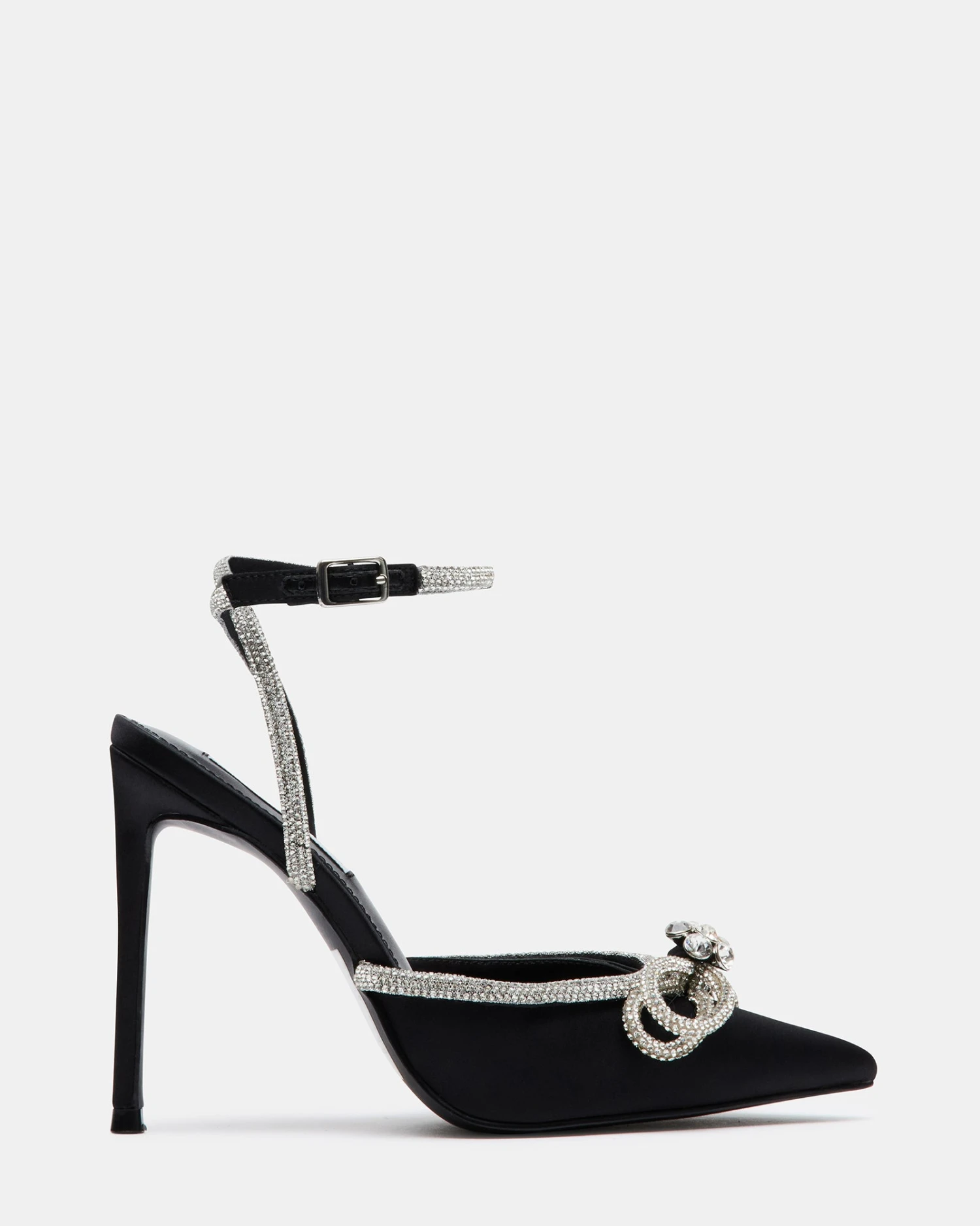 You’ll be the bell of the ball in VIABLE, the dress heel you’ll wear for years to come. Set atop a slender stiletto heel, this pointed-toe pair features a slim embellished ankle strap and bow design.