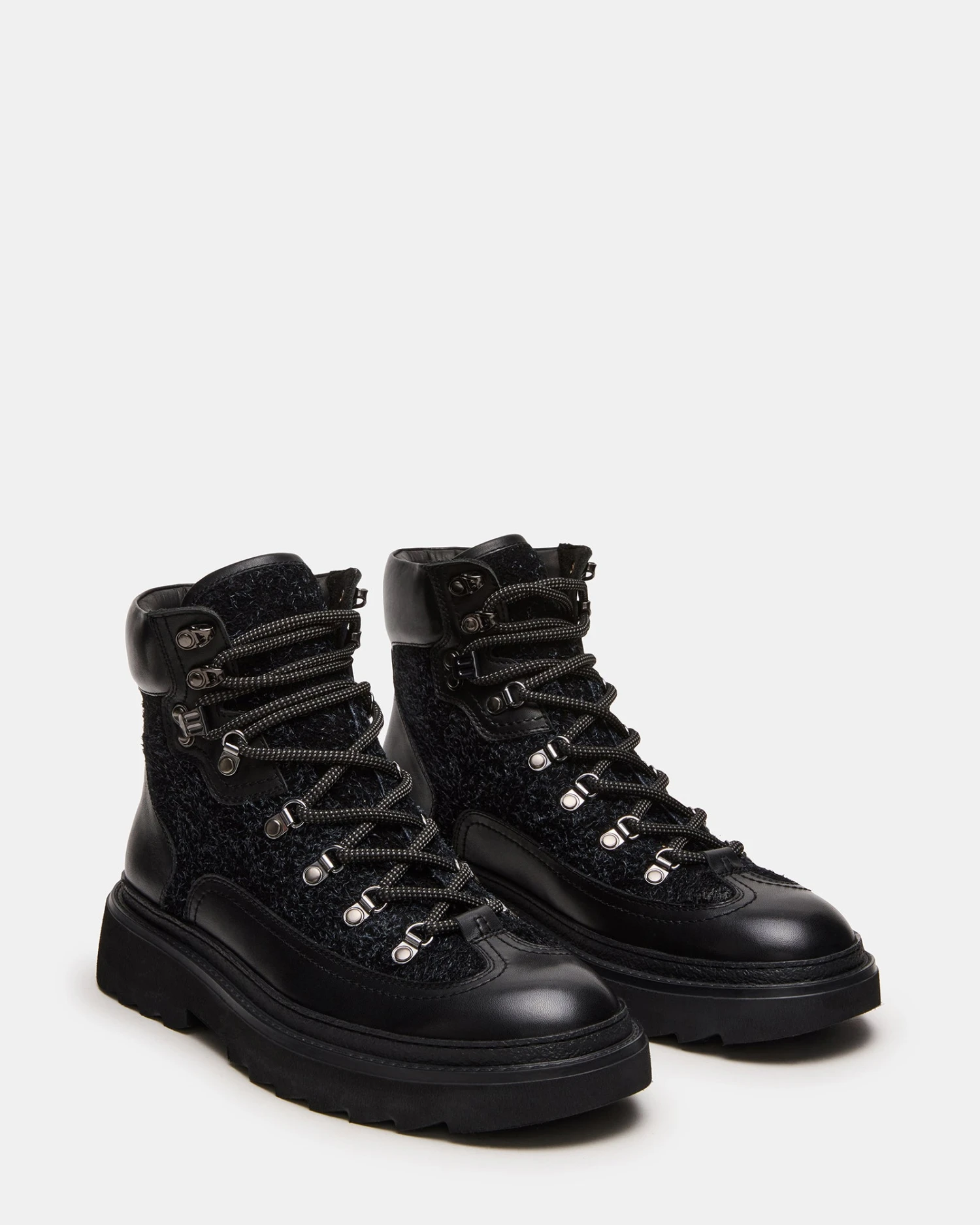 The YOSEMITE BLACK MULTI lug lace-up ankle boot combines rugged durability with refined style. Its sturdy lug sole offers reliable traction and stability, ideal for various terrains and weather conditions. The lace-up design ensures a secure fit, while the multi-toned finish adds versatile, contemporary appeal.